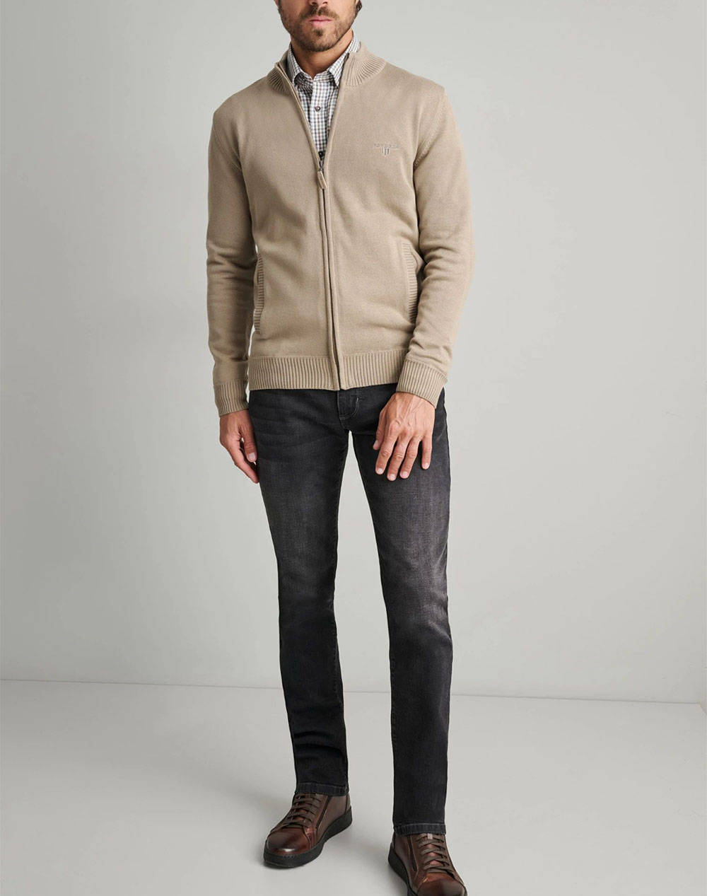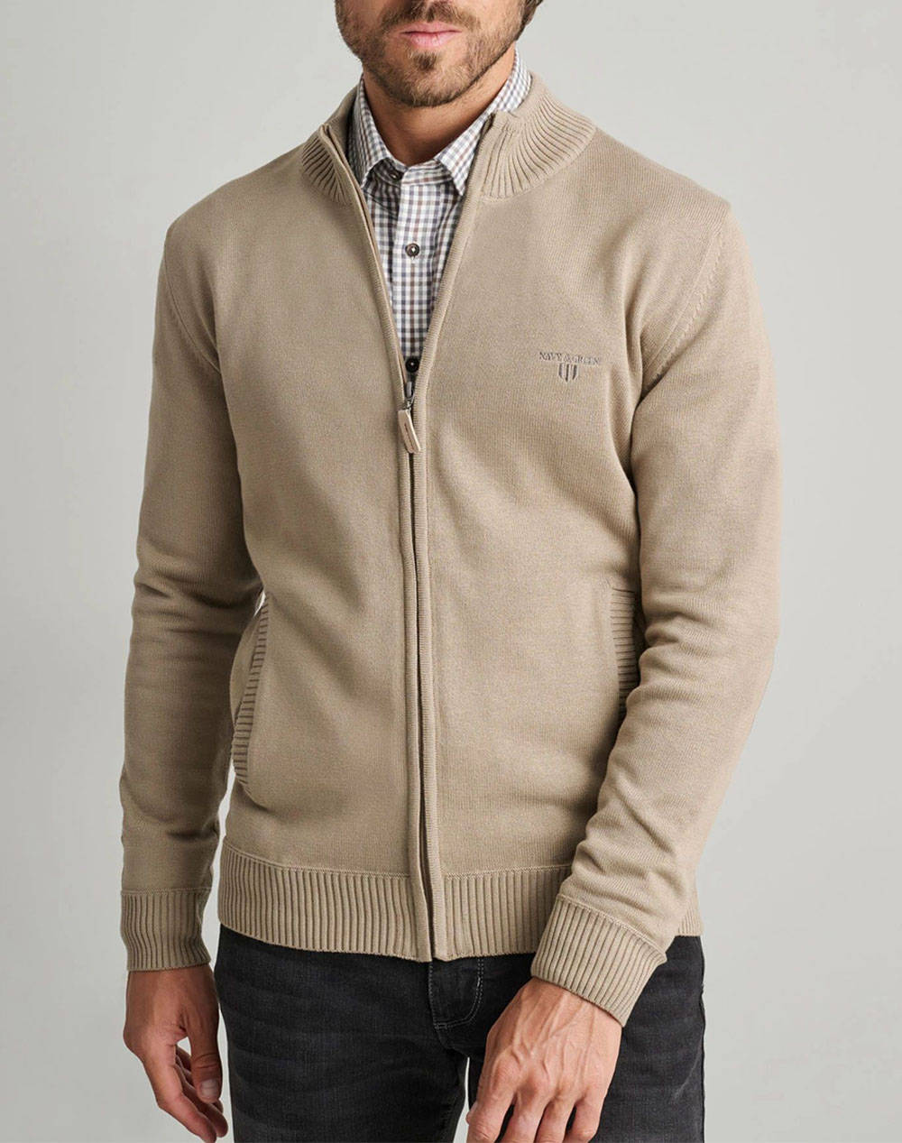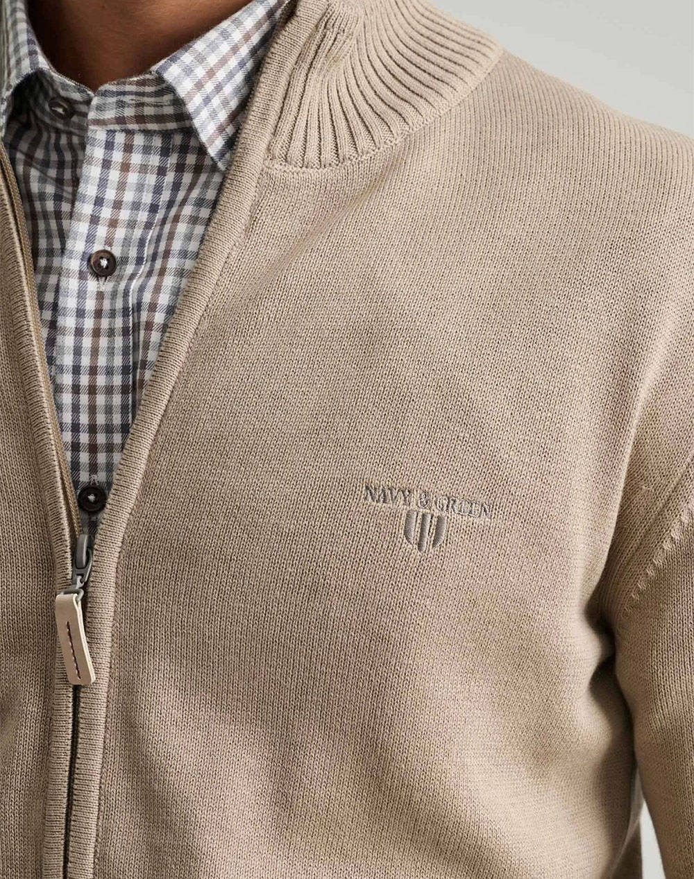 Men's knitted cardigan, regular fit, solid color, long sleeves, with pockets, logo on the chest and zipper closure. (Composition: 100% Cotton)