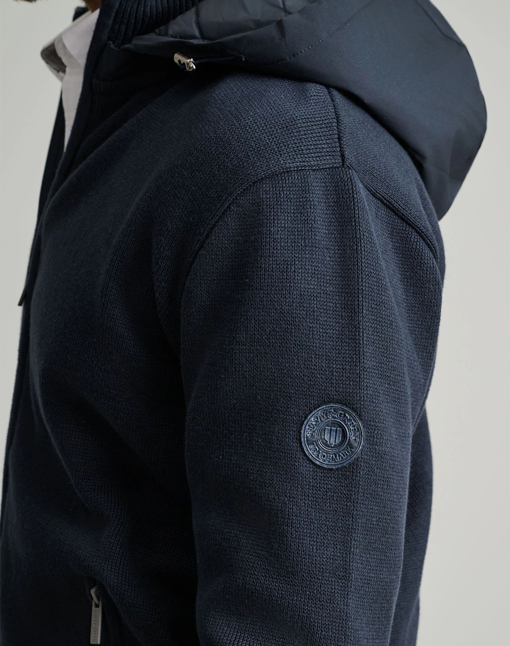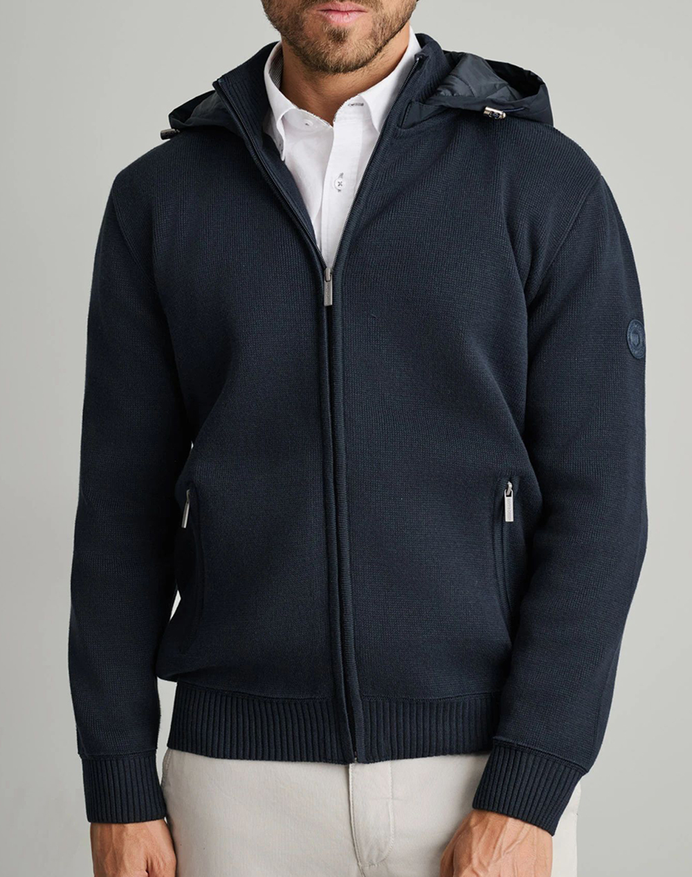 Men's knitted cardigan, regular fit, solid color, long sleeves, with hood, pockets and zipper closure. (Composition: 100% Cotton)