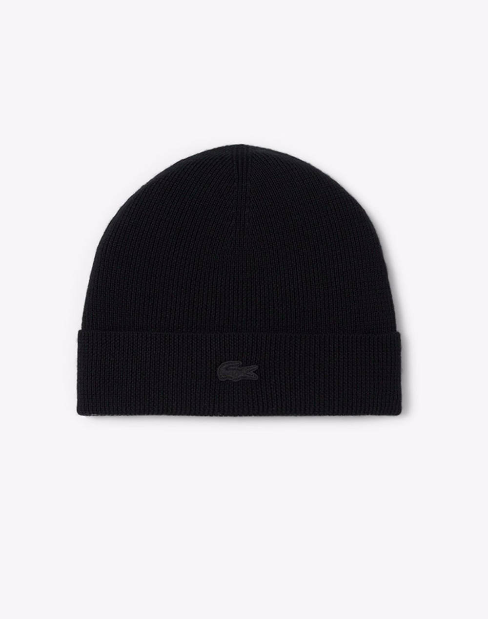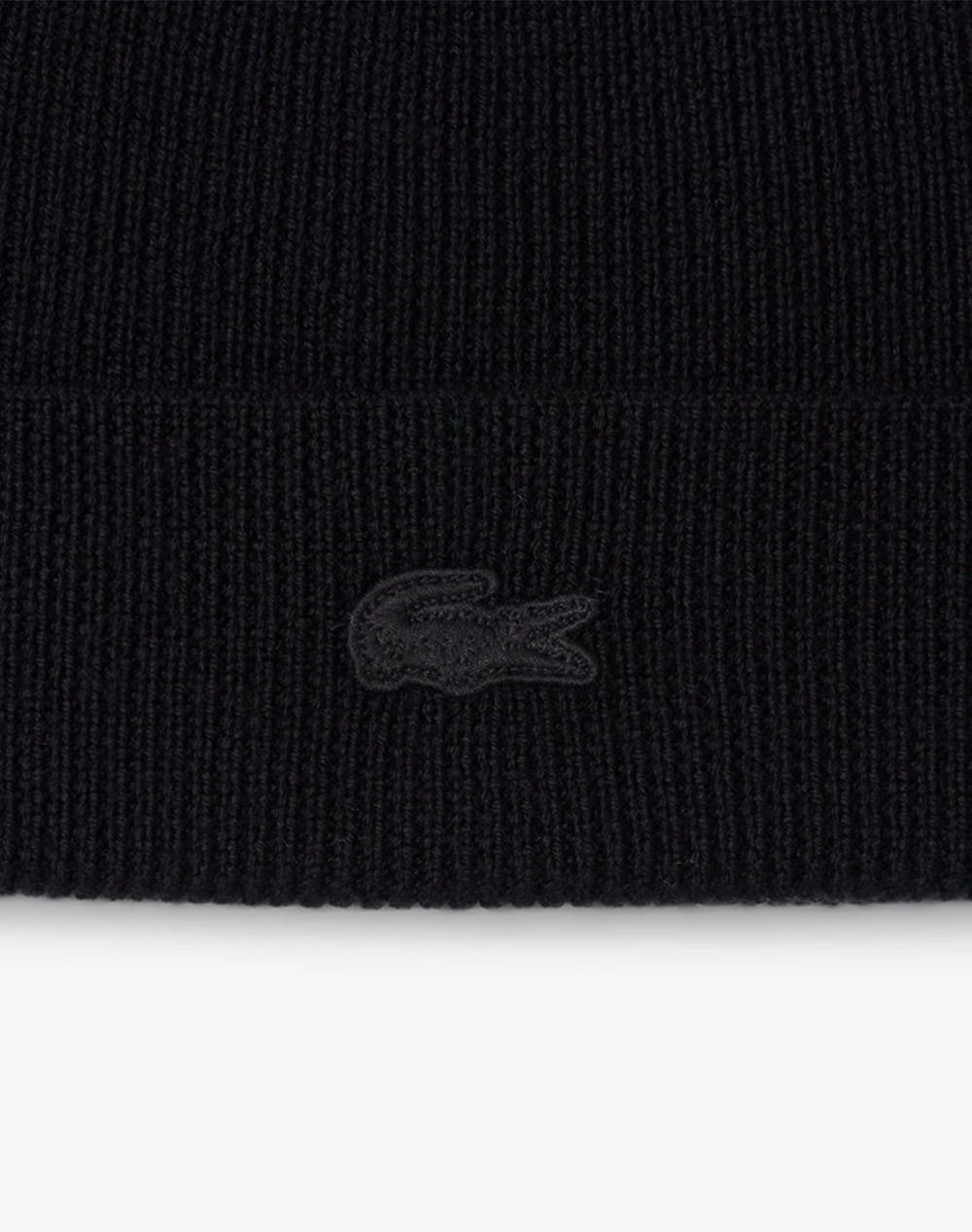 Unisex knitted beanie, with rib weave and embroidered tonal logo on the front. (Composition: 100% Wool)