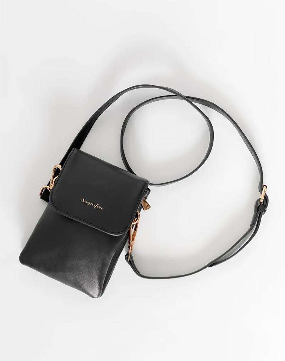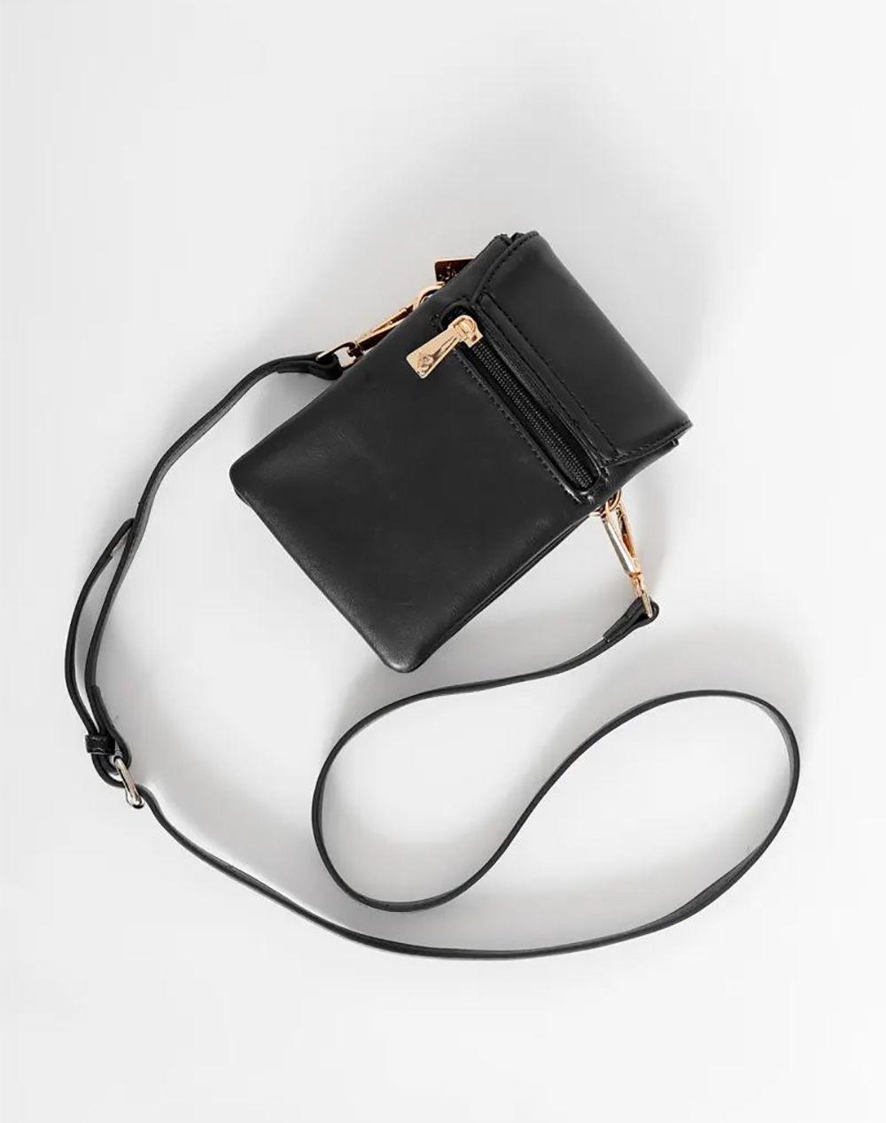 Γυναικείο τσαντάκι/θήκη κινητού, διαθέτει ρυθμιζόμενο λεπτό λουράκι, δύο εσωτερικές θήκες και κλείσιμο με καπάκι και μαγνητικό κούμπωμα. Διαστάσεις: 5 x 13 x 19εκ. (Σύνθεση: 100% Πολυουρεθάνη)