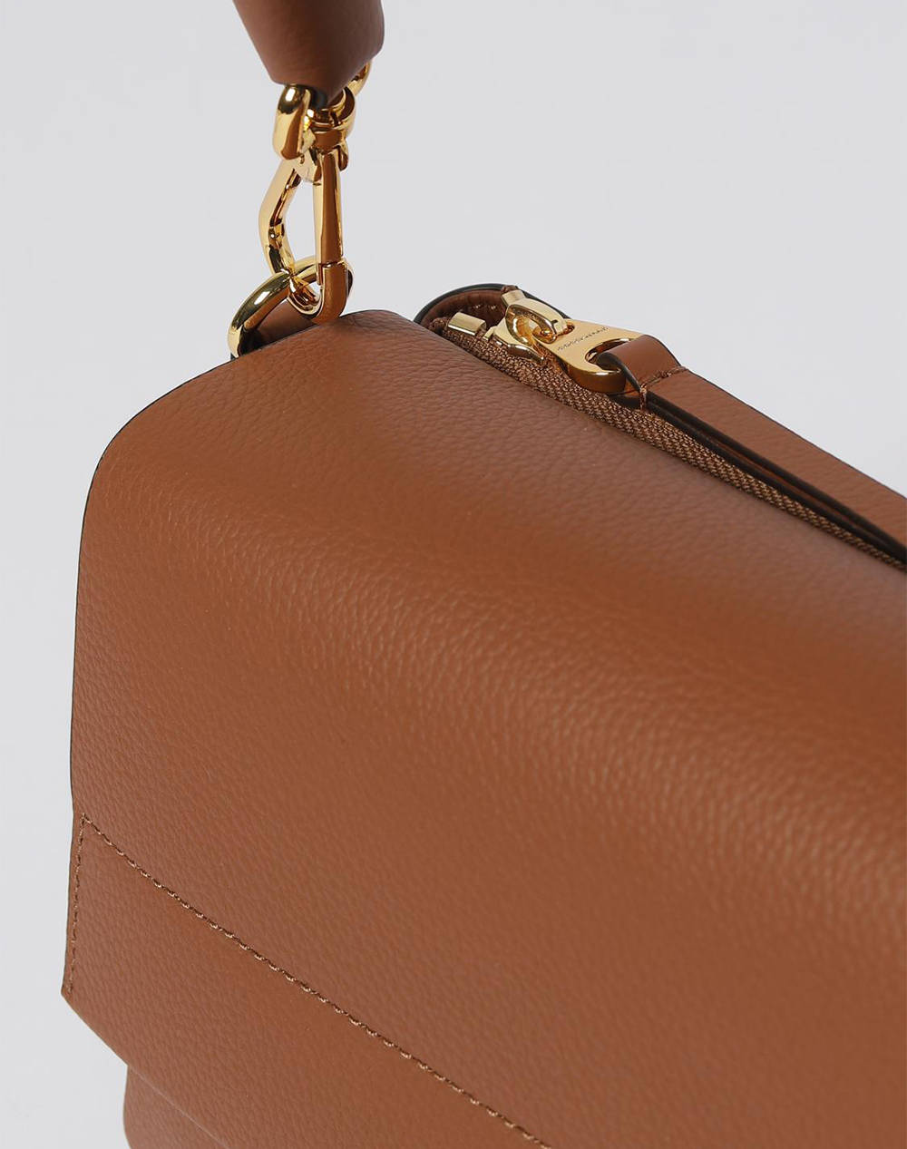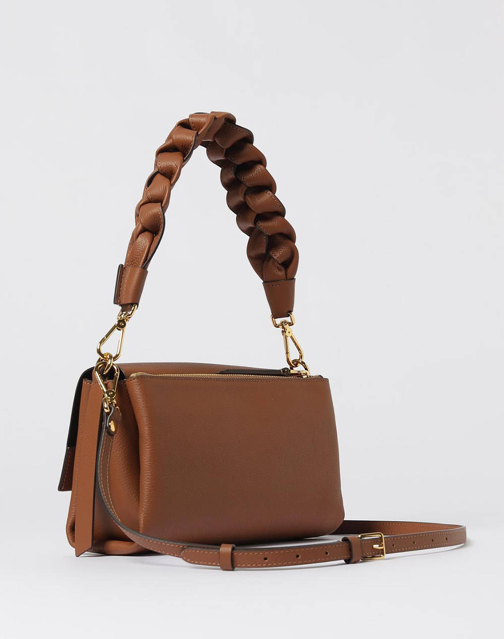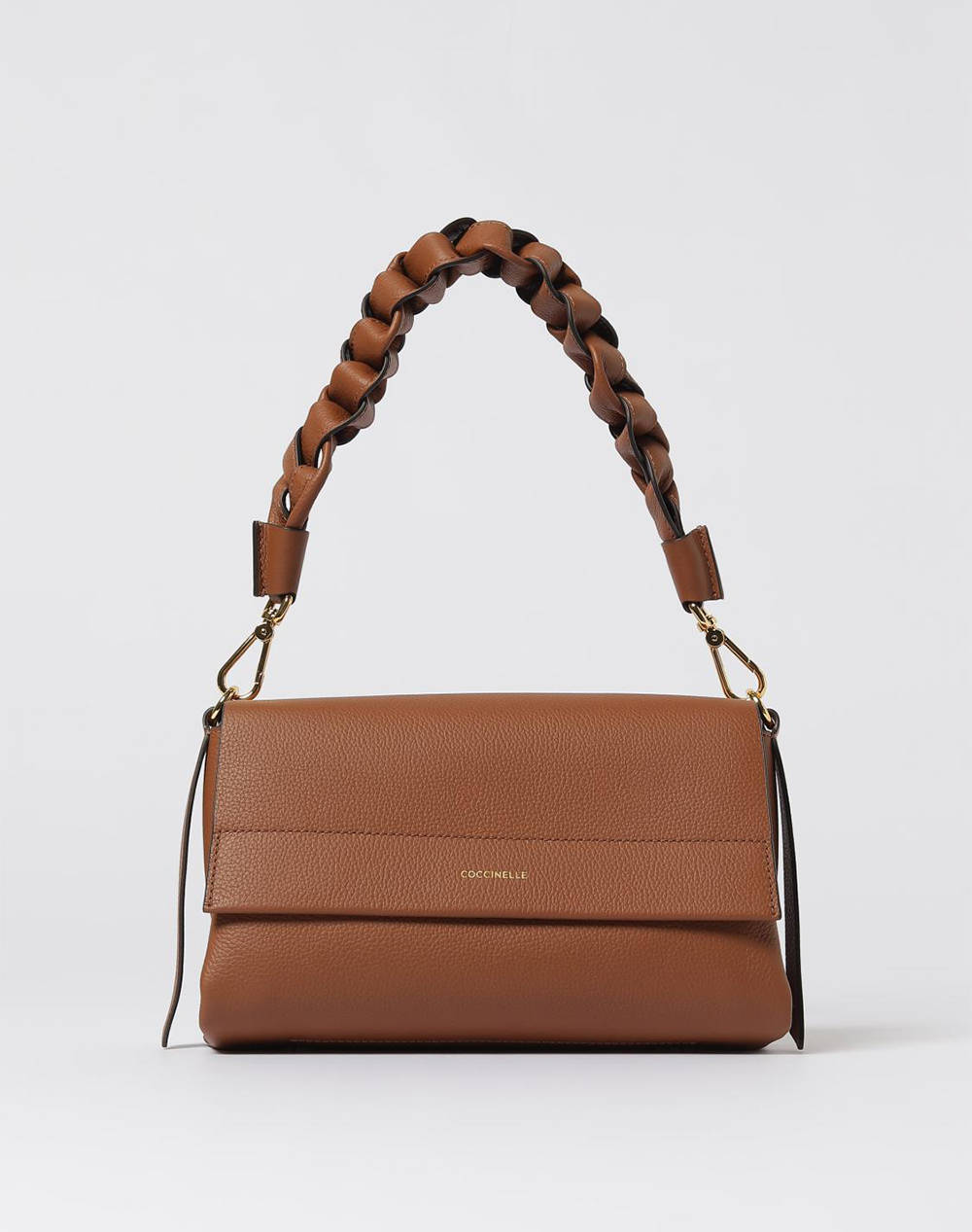 Women's shoulder bag, with flap closure, logo detail on the front and detachable braided strap. (Composition: Natural Leather)