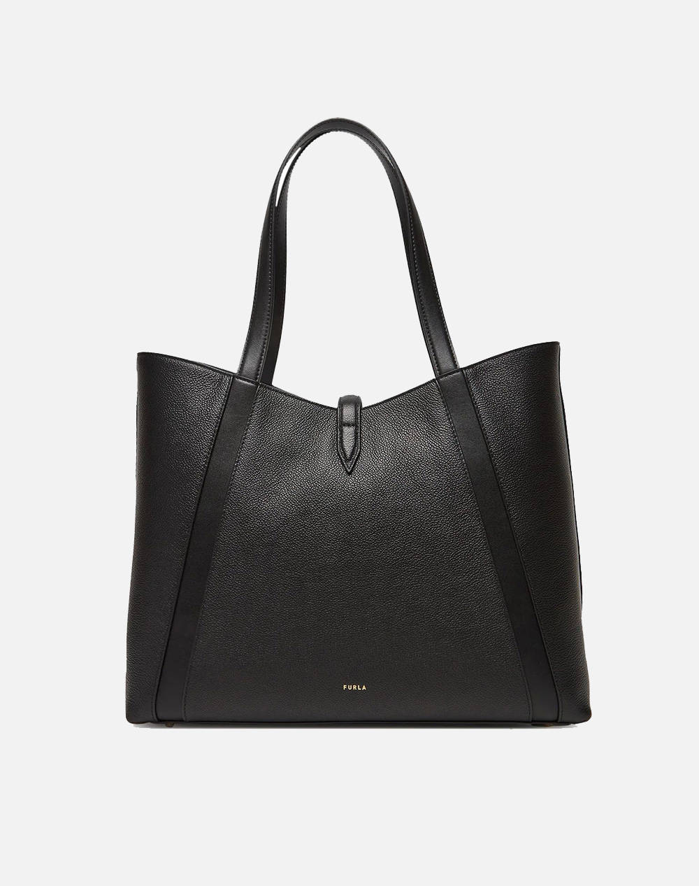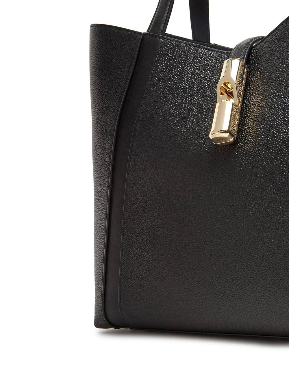 Women's tote bag, with a main compartment that closes with a metal clasp. It has double handles and a logo detail on one side. (Composition: 100% Leather)