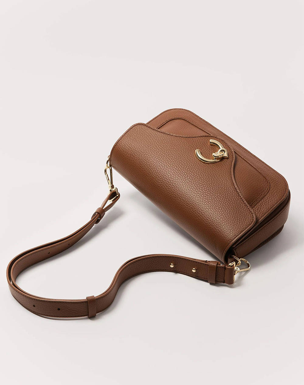 Women's shoulder/crossbody bag, with magnetic button closure, detachable/adjustable strap and logo detail on the front. (Composition: Natural Leather)