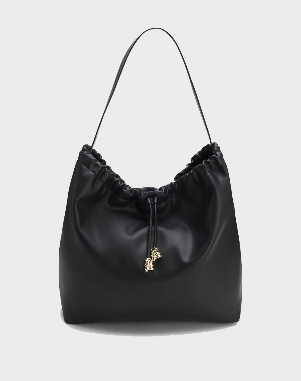 Women's shoulder bag, with a main compartment that closes with a drawstring, a shoulder strap and logo detail on one side. (Composition: 70% Polyurethane, 30% Polyester)