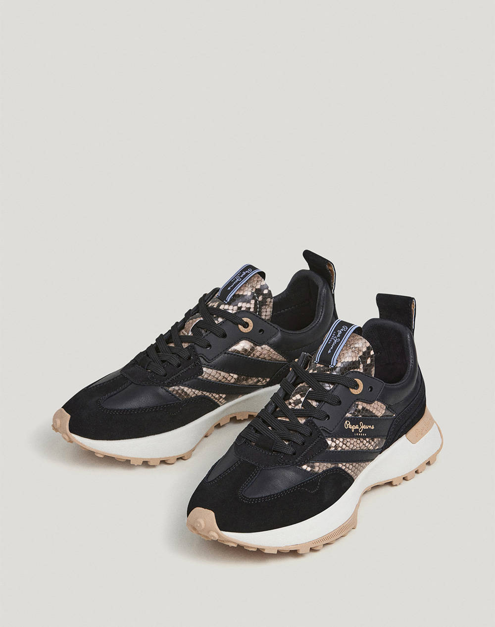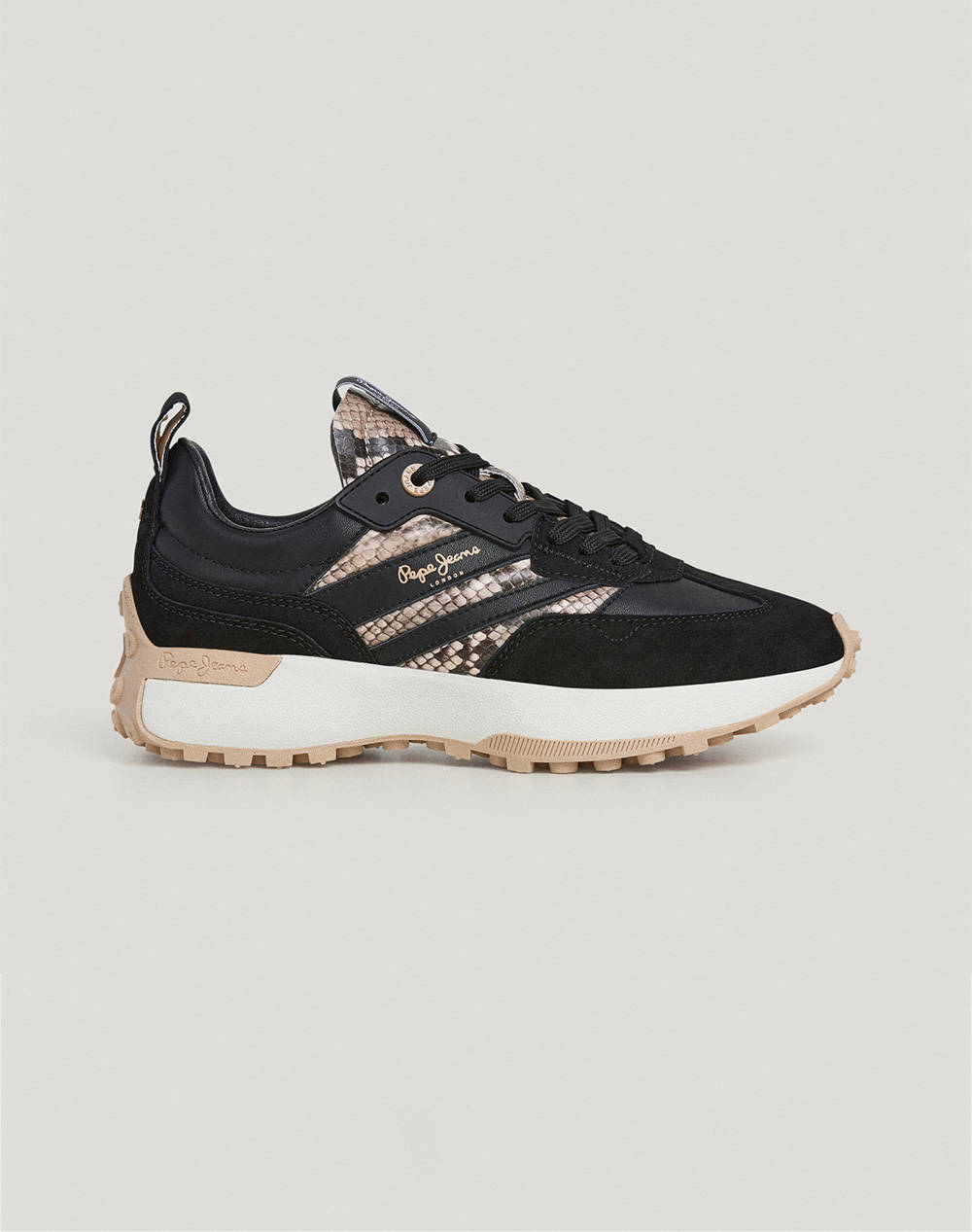 Women's sneakers, with regular fit, reinforced heel, snake print details and lace fastening. (Composition: 35% Suede Leather, 35% Polyurethane, 30% Leather)