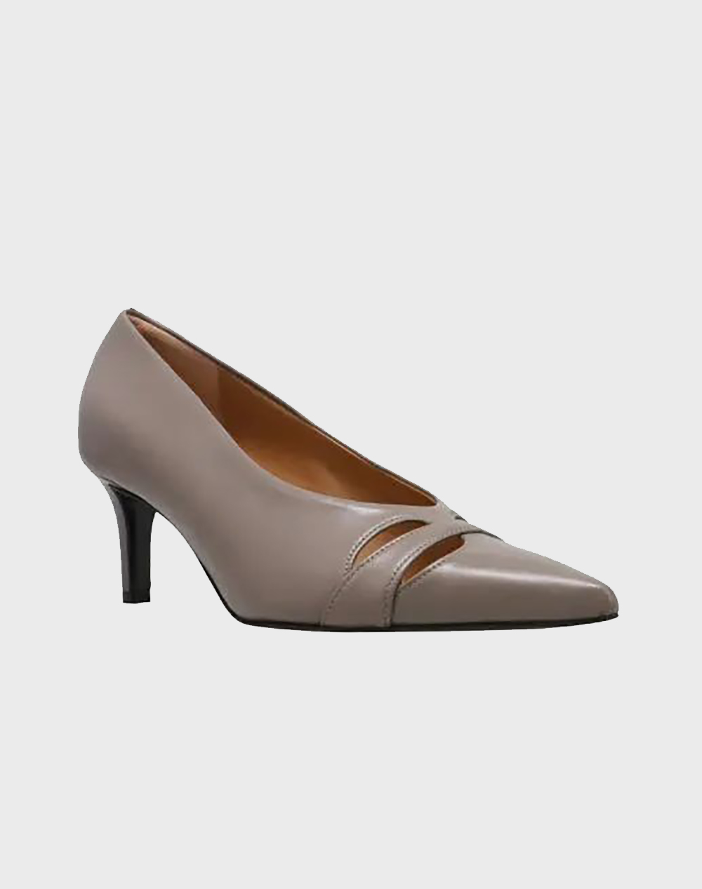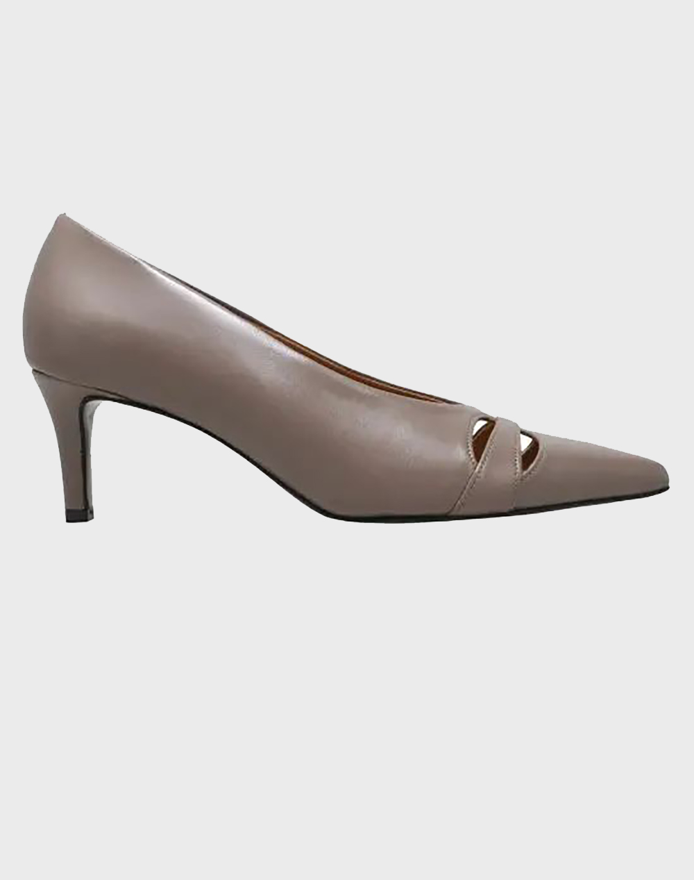 Women's pumps, with cut out design on the band, pointed toe, medium heel and slip on fit. Heel height: 5cm. (Composition: Leather)