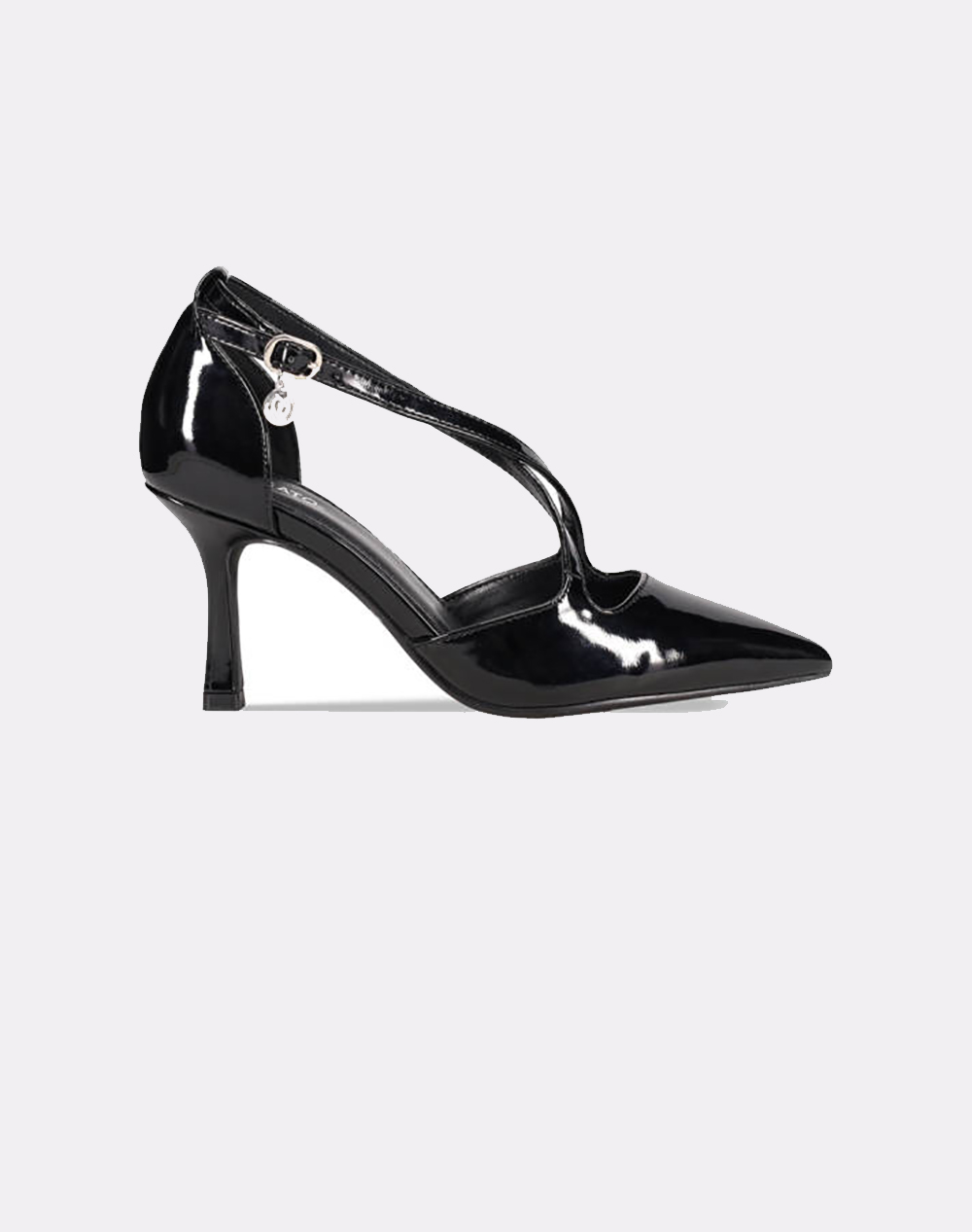 Women's pumps, with a pointed toe, a high thin heel and adjustable ankle straps. Heel height: 8cm. (Composition: Synthetic Leather)
