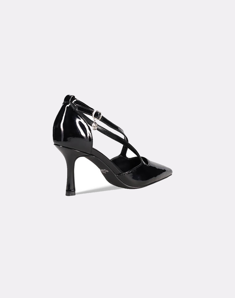 MIGATO PATENT LEATHER SHOES WITH CRISSCROSS STRAP & MTLLC. DECOR. BLACK
