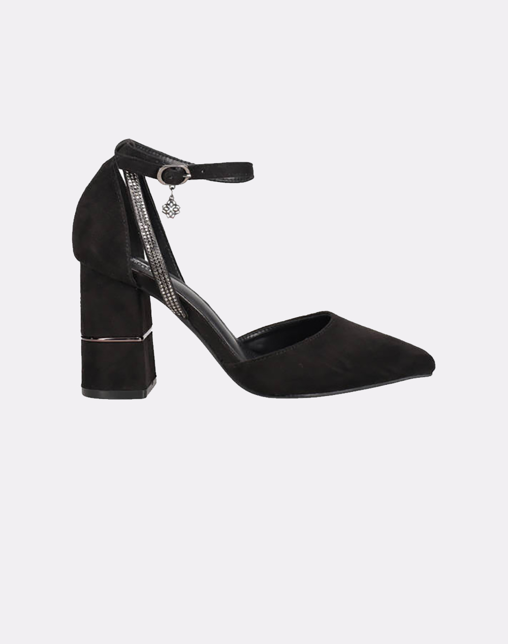 MIGATO SUEDE SHOES WITH STRIPES, RHINESTONES & METALLIC HEEL BLACK
