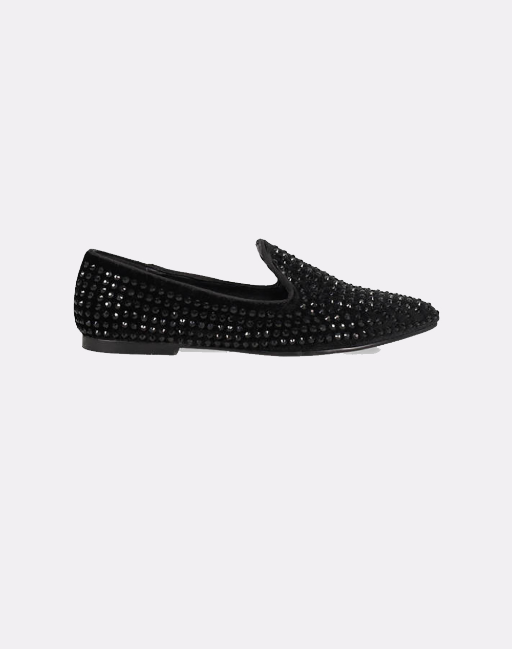 Women's loafers, with a pointed toe, velvet look and rhinestones. (Composition: Fabric)