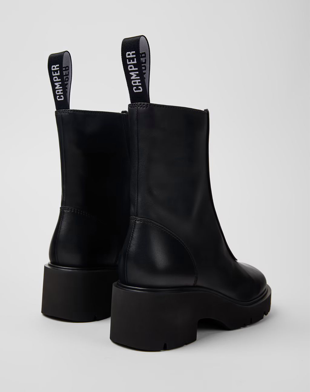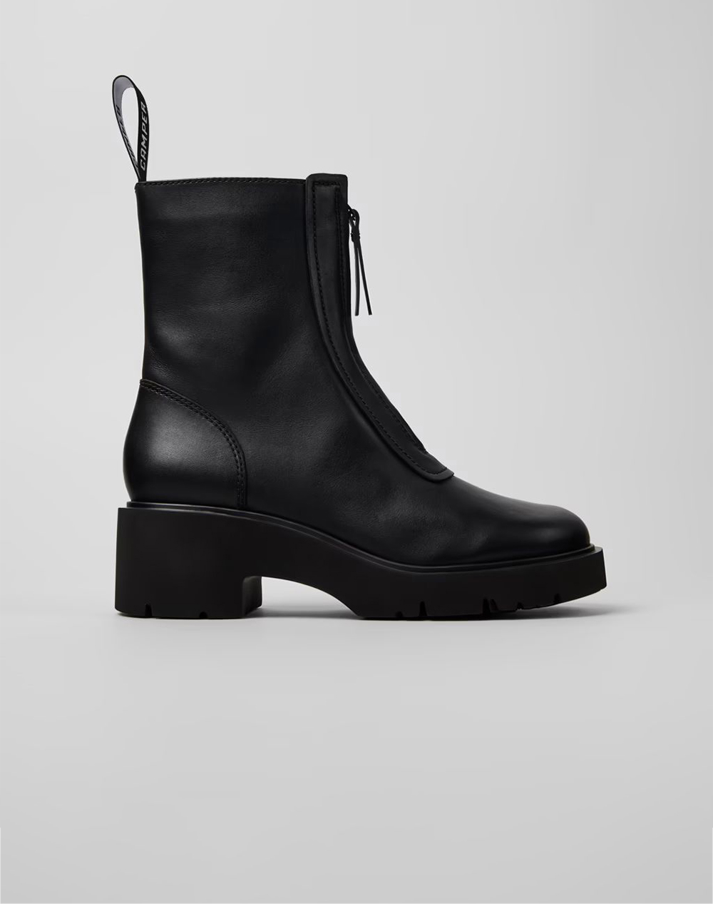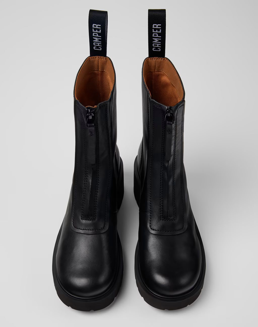 Women's ankle boots, with a round toe, OrthoLite® Recycled™ insole, EVA outsole and front zipper closure. Heel height: 5.4cm. (Composition: Genuine leather & Fabric)