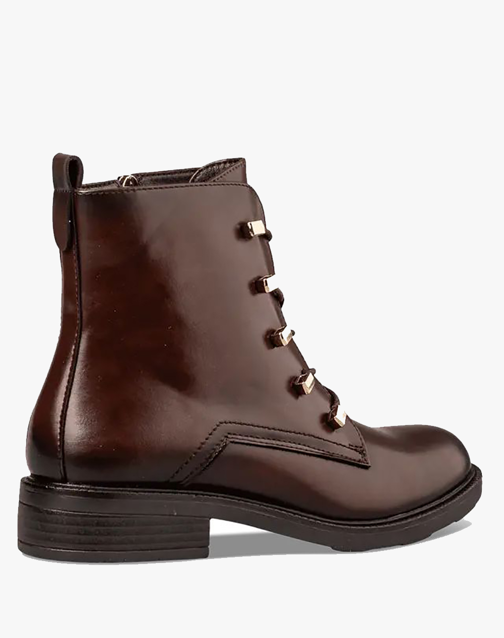 Women's ankle boots, with a round toe, elastic sole, laces and a zipper on the side. Heel height: 3cm. (Composition: Synthetic Leather)