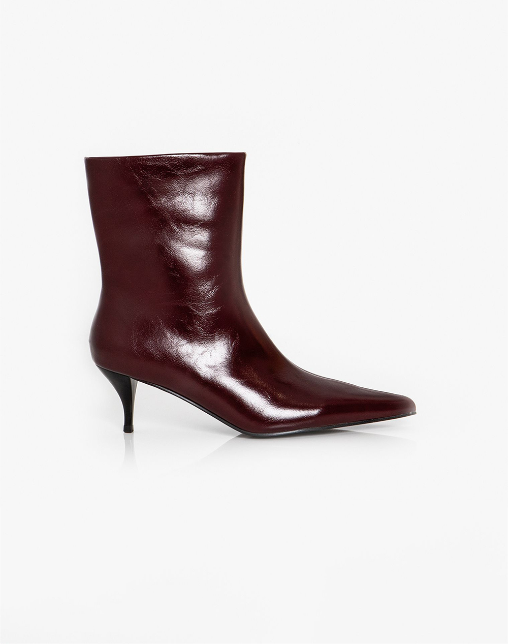 Women's ankle boots, with a pointed toe, thin heel, ankle length and zipper closure. (Composition: 100% Polyurethane)