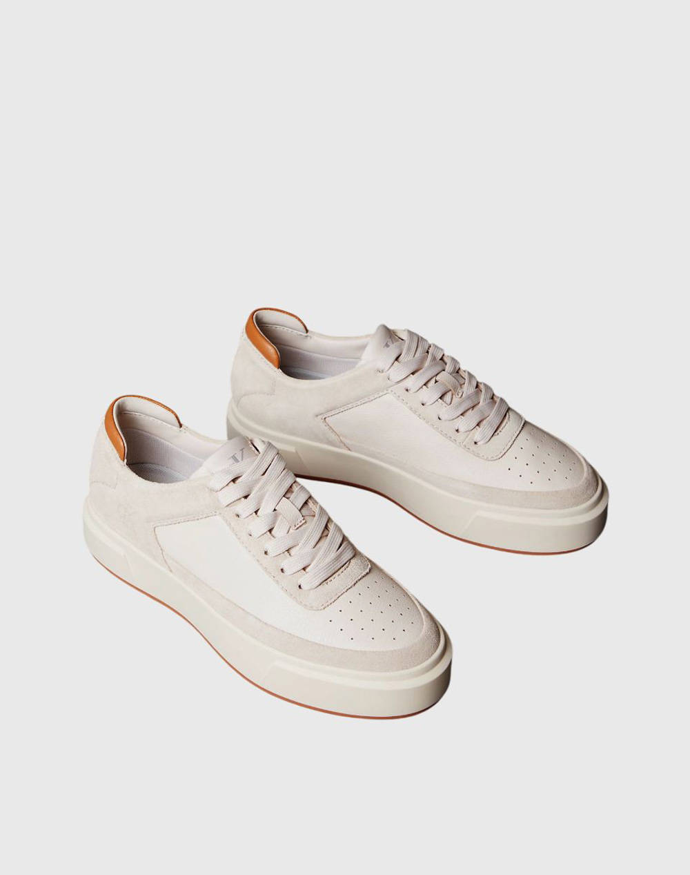 Women's sneakers, with a round toe, comfortable foam insole, flexible natural rubber outsole and lace fastening. (Composition: Suede & Leather)