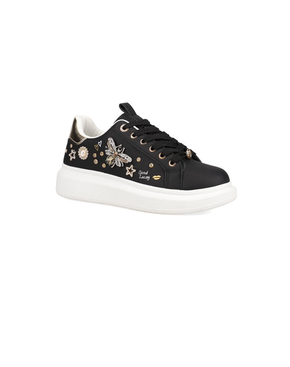 Women's sneakers, with a round toe, decorative details and lace-up fastening. Sole height: 4.4cm. (Composition: Synthetic)