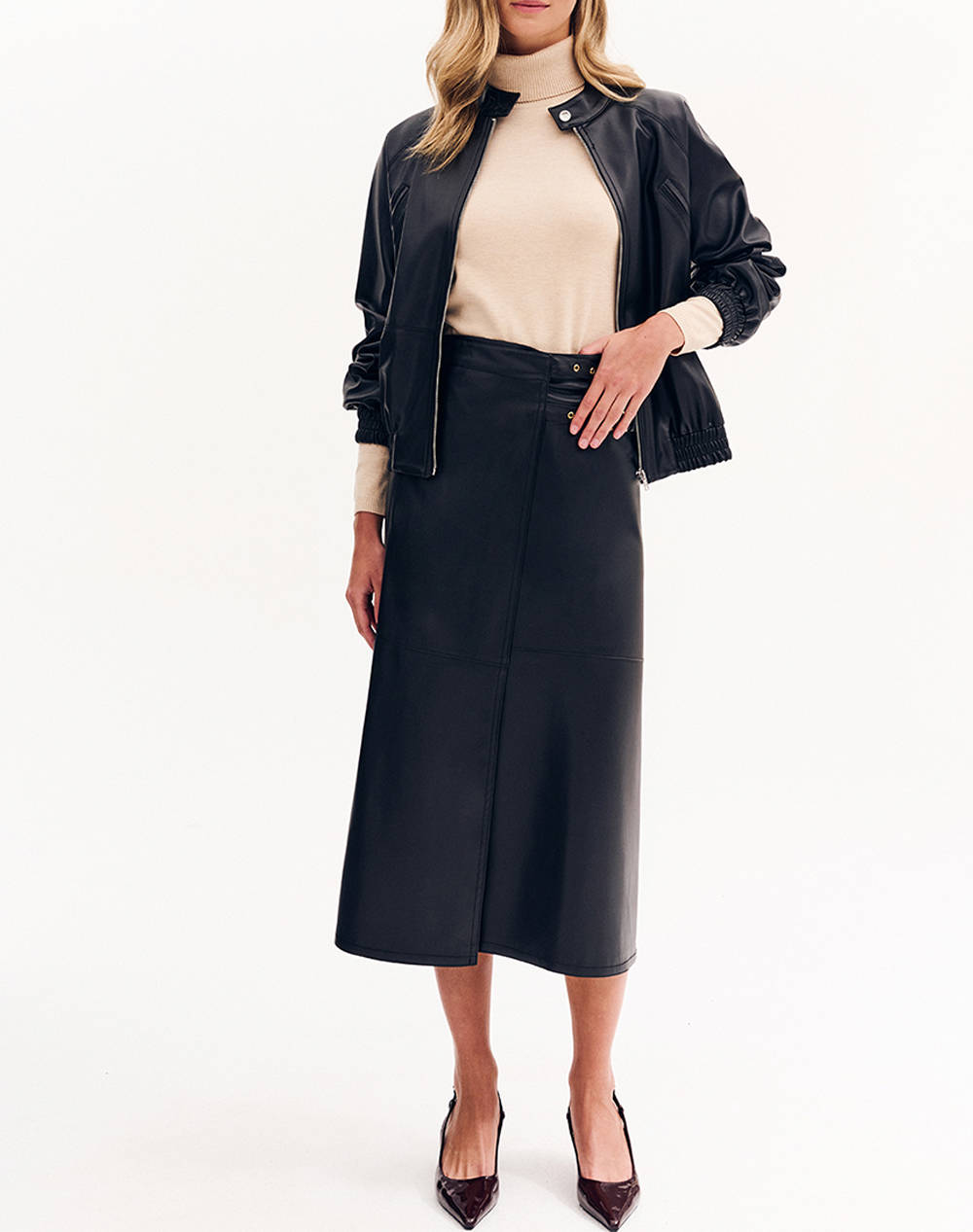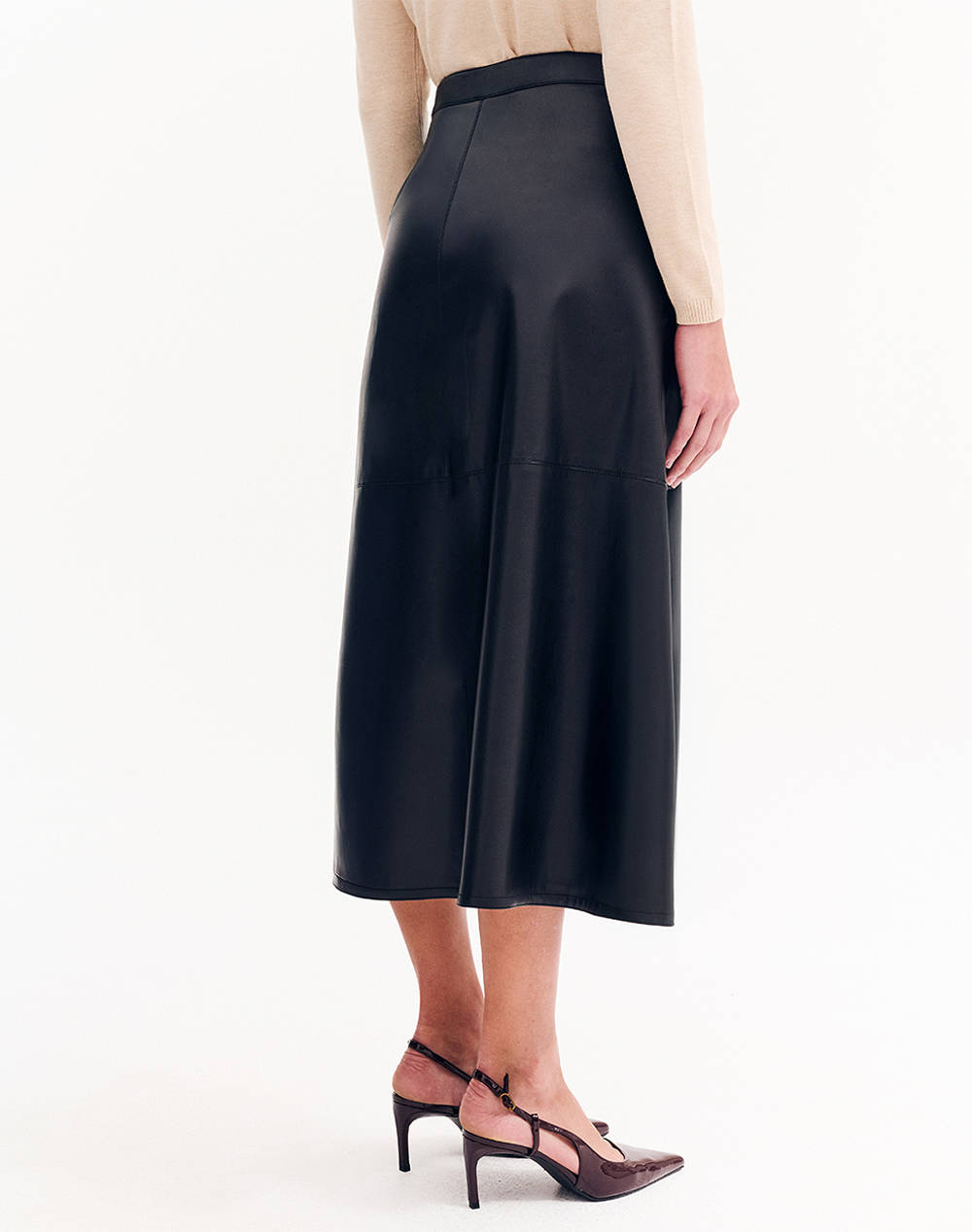 Women's midi skirt, in envelope style. Closes with an internal button and double straps on the side. (Composition: 100% Polyurethane, 100% Polyester)