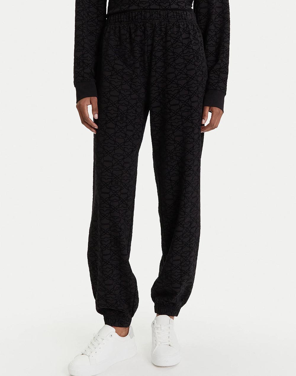 Women's track pants, regular fit, with all over logo print and elastic at the waist and hem. (Composition: 48% Cotton, 48% Modal, 4% Elastane)