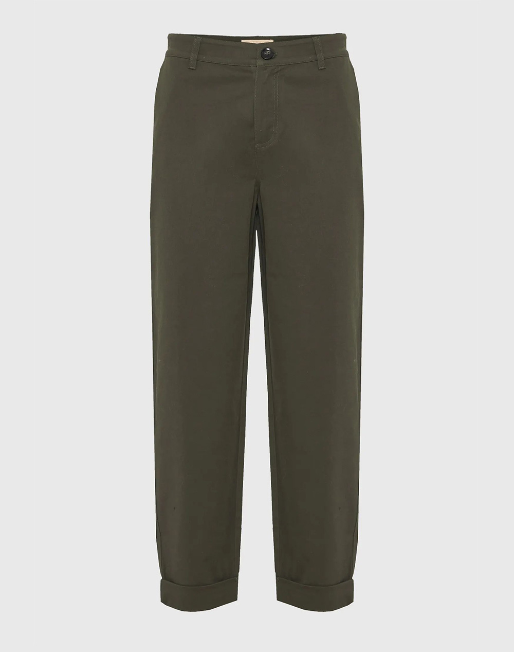 Women's chino pants, slim fit, with pockets, turned up hem and zipper and button closure. (Composition: 97% Cotton, 3% Elastane)