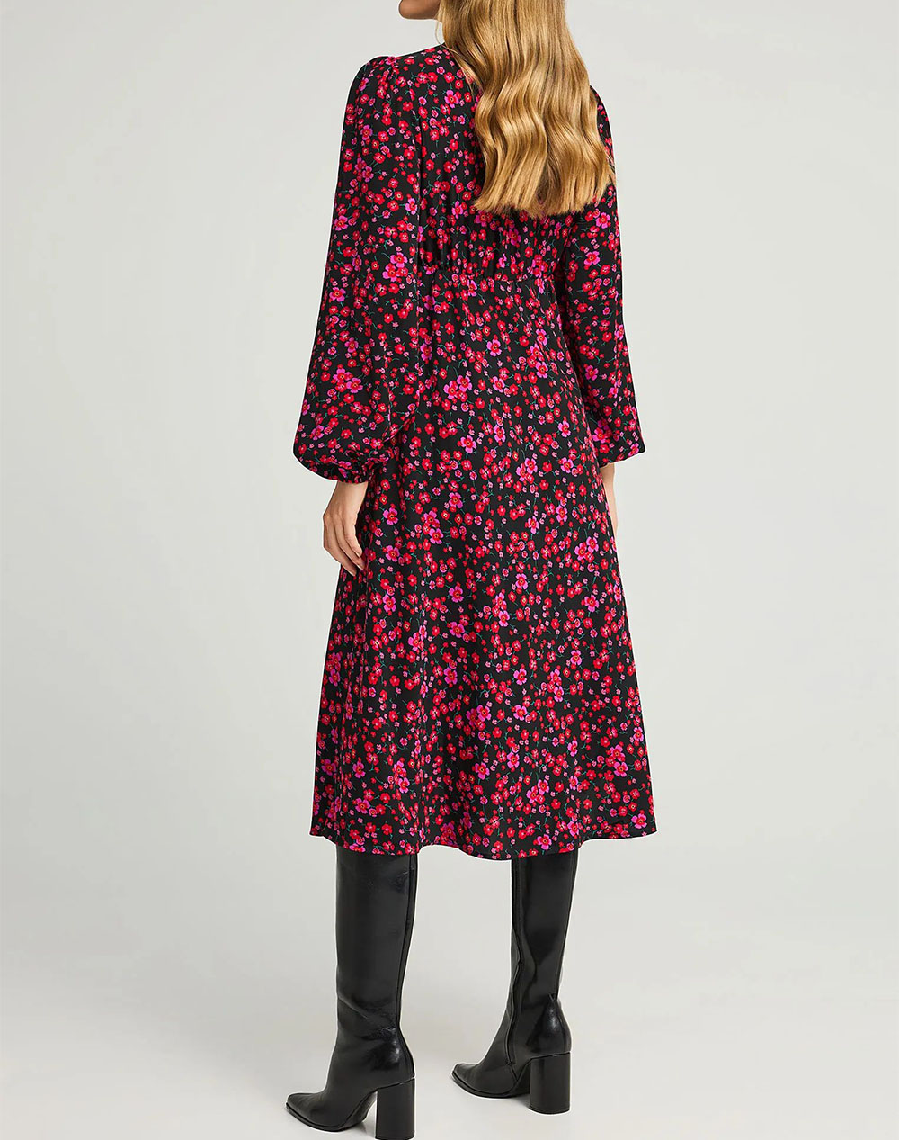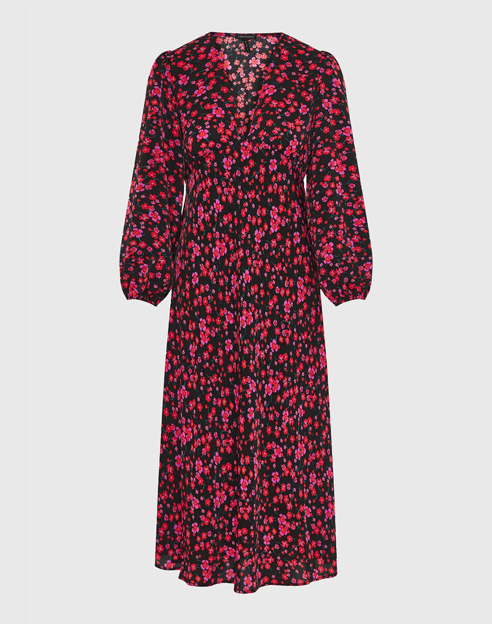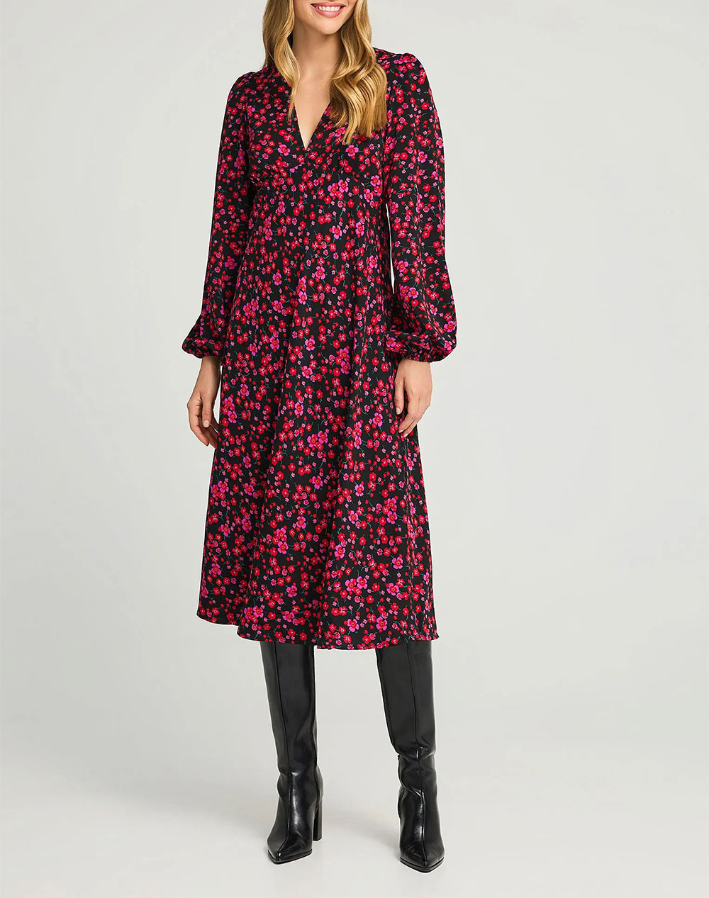Women's maxi dress, regular fit, floral, long sleeve, with V-neck and Bishop sleeve. (Composition: 100% Polyester)