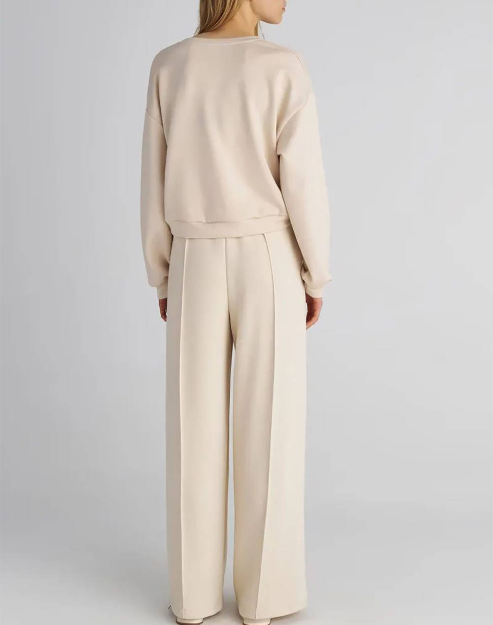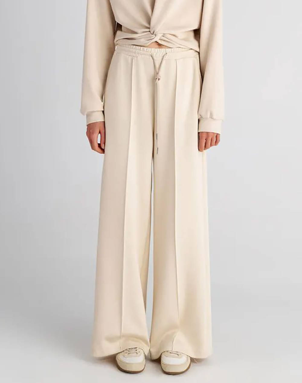 Γυναικείο παντελόνι φόρμας, μονόχρωμο, σε φαρδιά γραμμή, ψηλόμεσο, με ελαστική μέση και κορδόνι περίσφυξης. (Σύνθεση: 51%Ρεγιόν, 43% Πολυεστέρας, 6%Spandex).