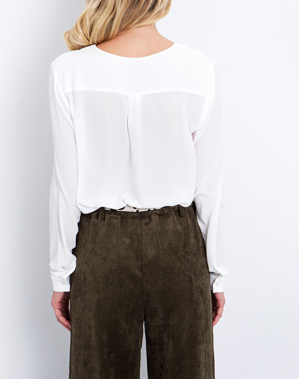 Women's shirt, in a comfortable fit, solid color, with an asymmetrical finish and front button closure. (Composition: 100% Polyester)