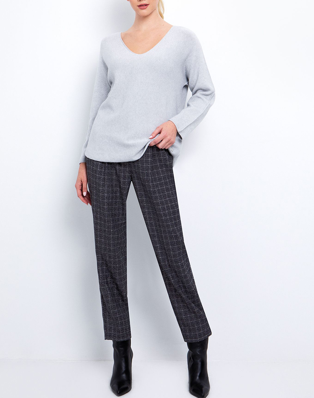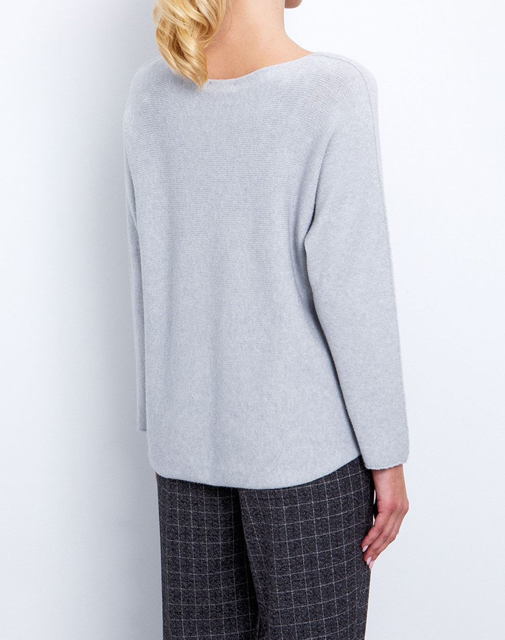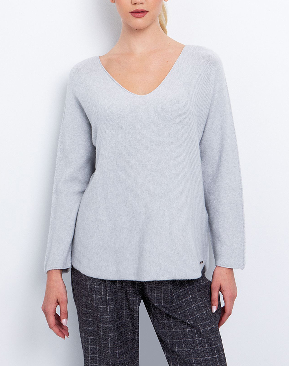 Women's knitted top, in a comfortable fit, long sleeves, with an open V neckline. (Composition: 52% Viscose, 26% Polyester, 22% Polyamide)
