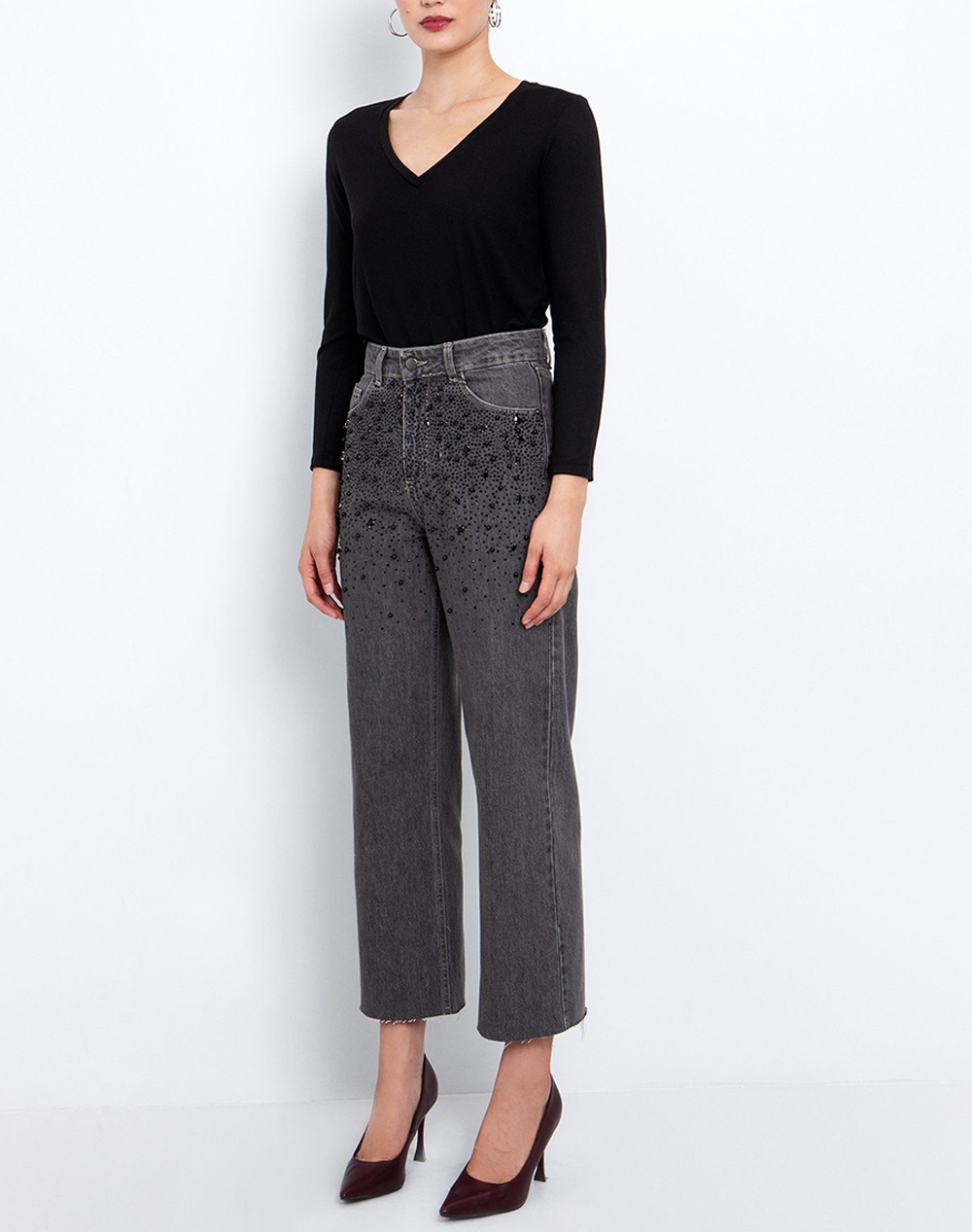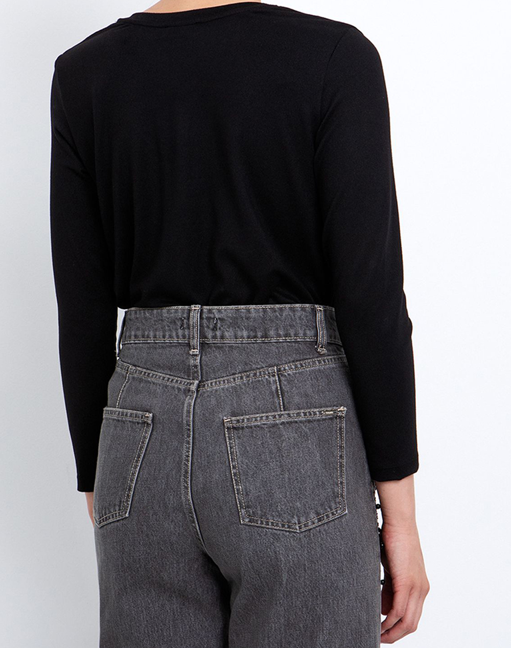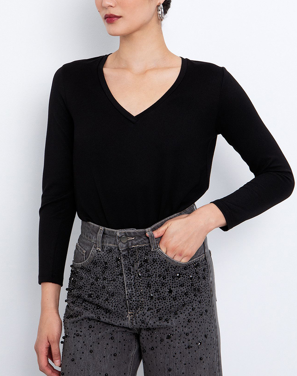 Women's regular-fit, long-sleeved, ribbed V-neck blouse. (Composition: 95% Polyester, 5% Elastane)