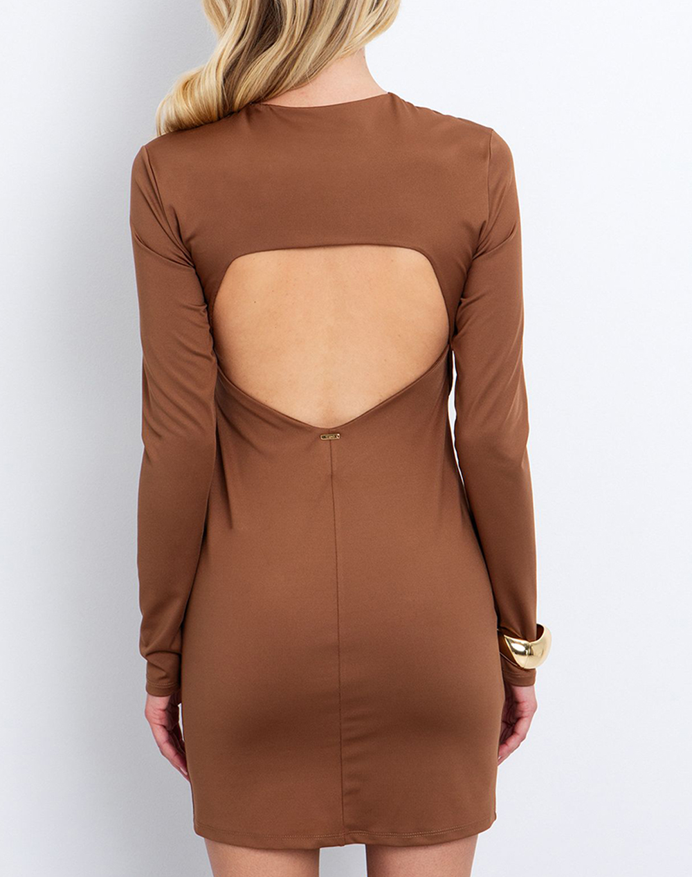 Women's bodycon mini dress, long sleeves, with cut out back and round neckline. (Composition: 90% Polyester, 10% Elastane)