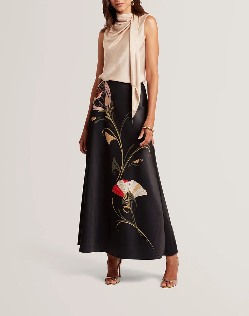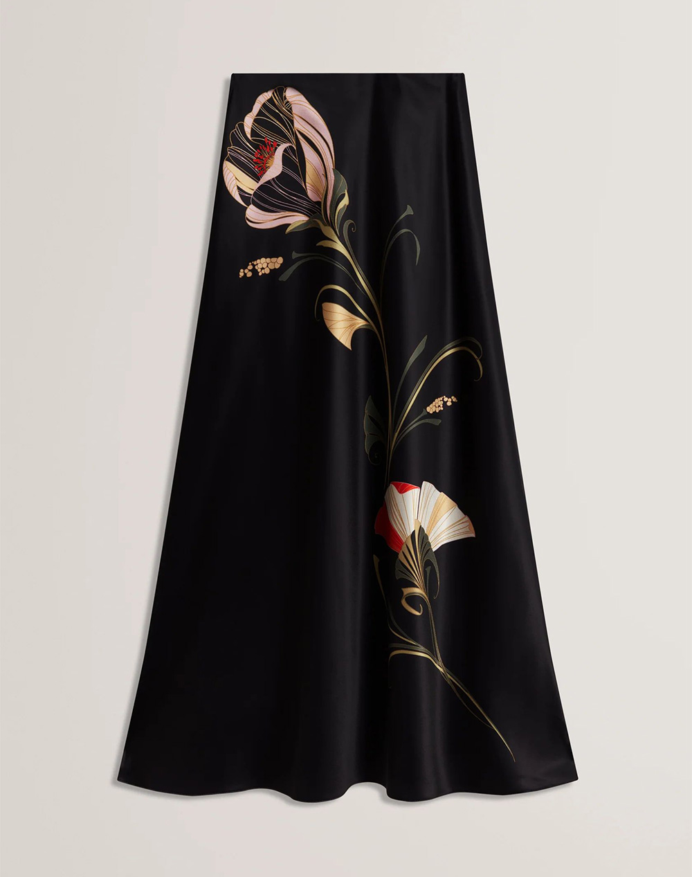TED BAKER SALIRA Printed Bias Cut Midi Skirt