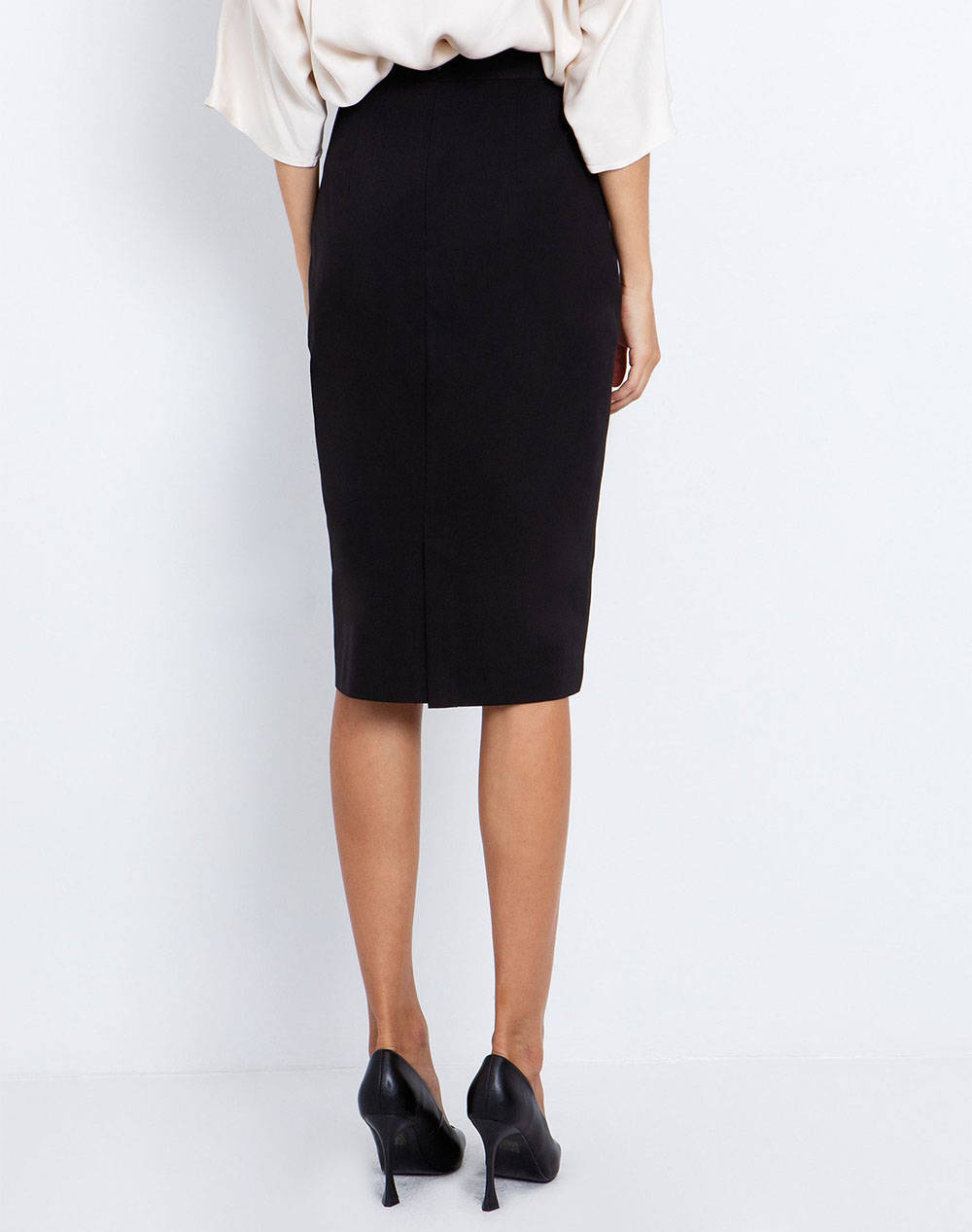 Women's midi skirt, pencil, high waist, with a back with a slit at the end and a hidden zipper closure at the back seam. (Composition: 62% Cotton, 33% Polyester, 5% Elastane)