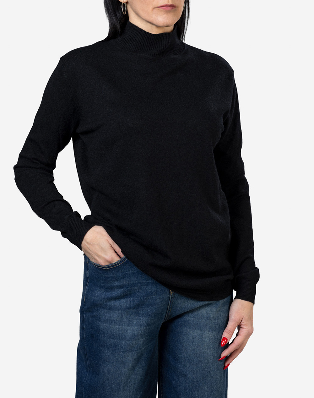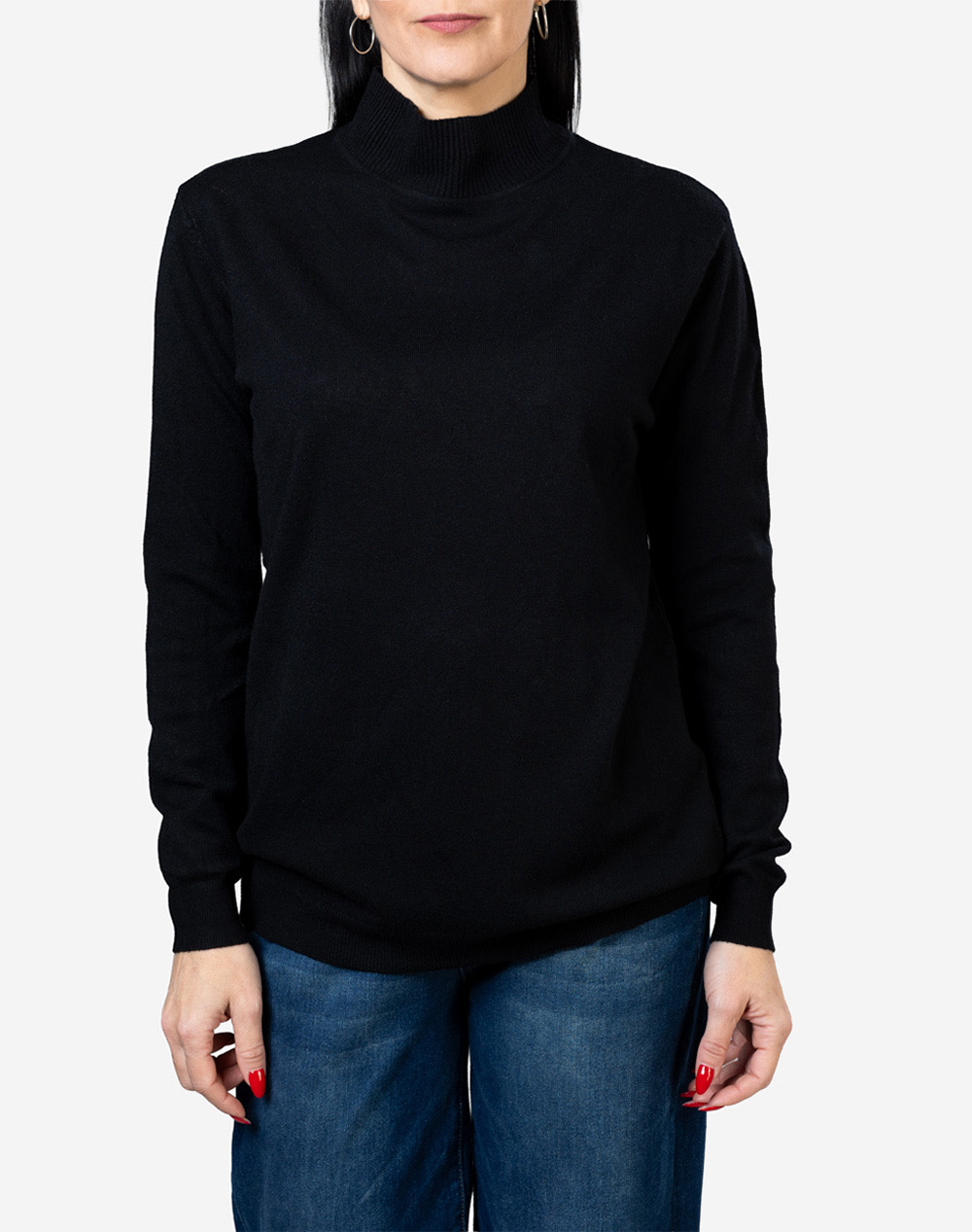 Γυναικεία πλεκτή μπλούζα, σε χαλαρή γραμμή, μακρυμάνικη, με ψηλή λαιμόκοψη και rib άκρες. Καλύπτει έως 100εκ. περιφέρεια στο στήθος. (Σύνθεση: 55% Βισκόζη, 35% Πολυεστέρας, 10% Ελαστάνη)