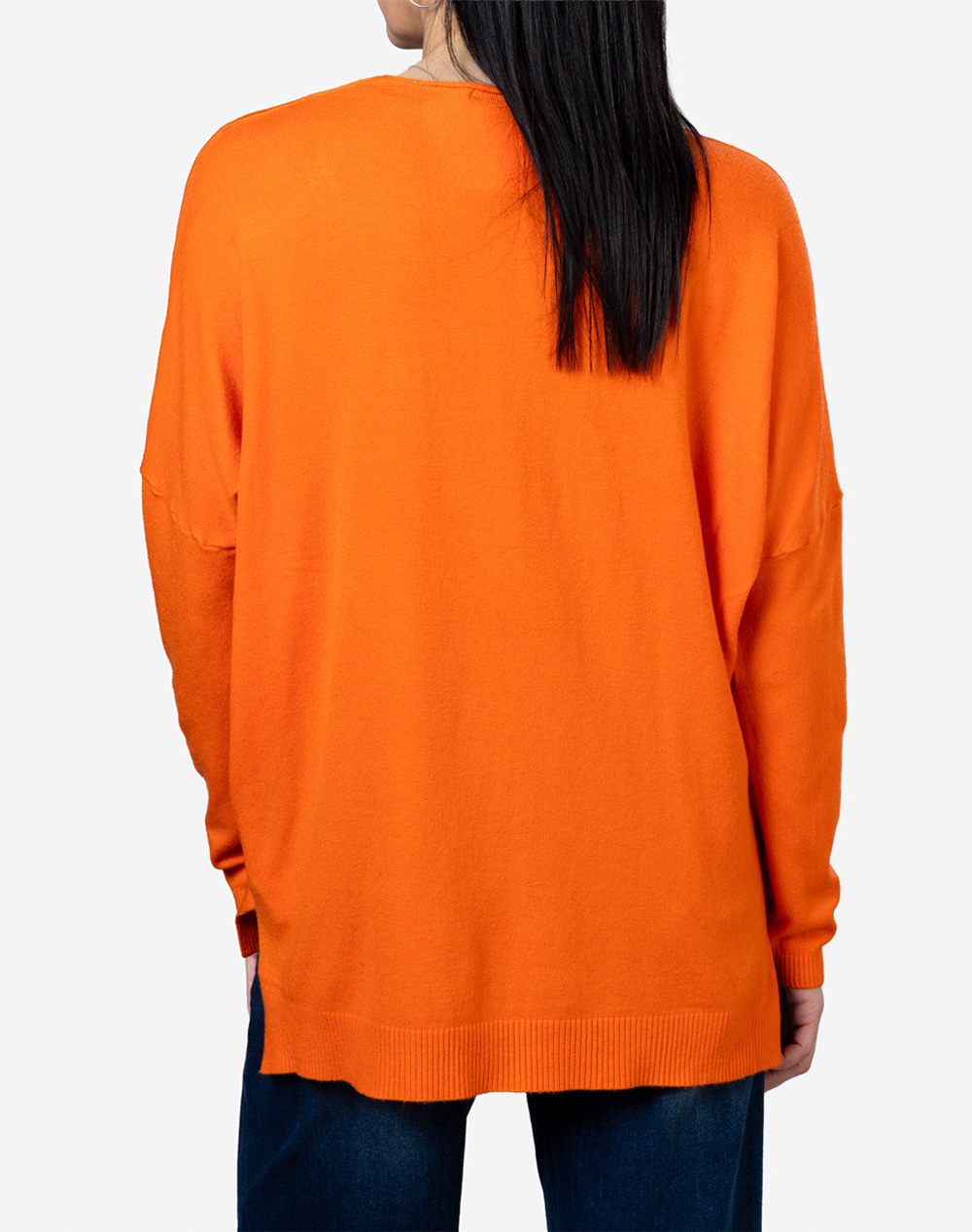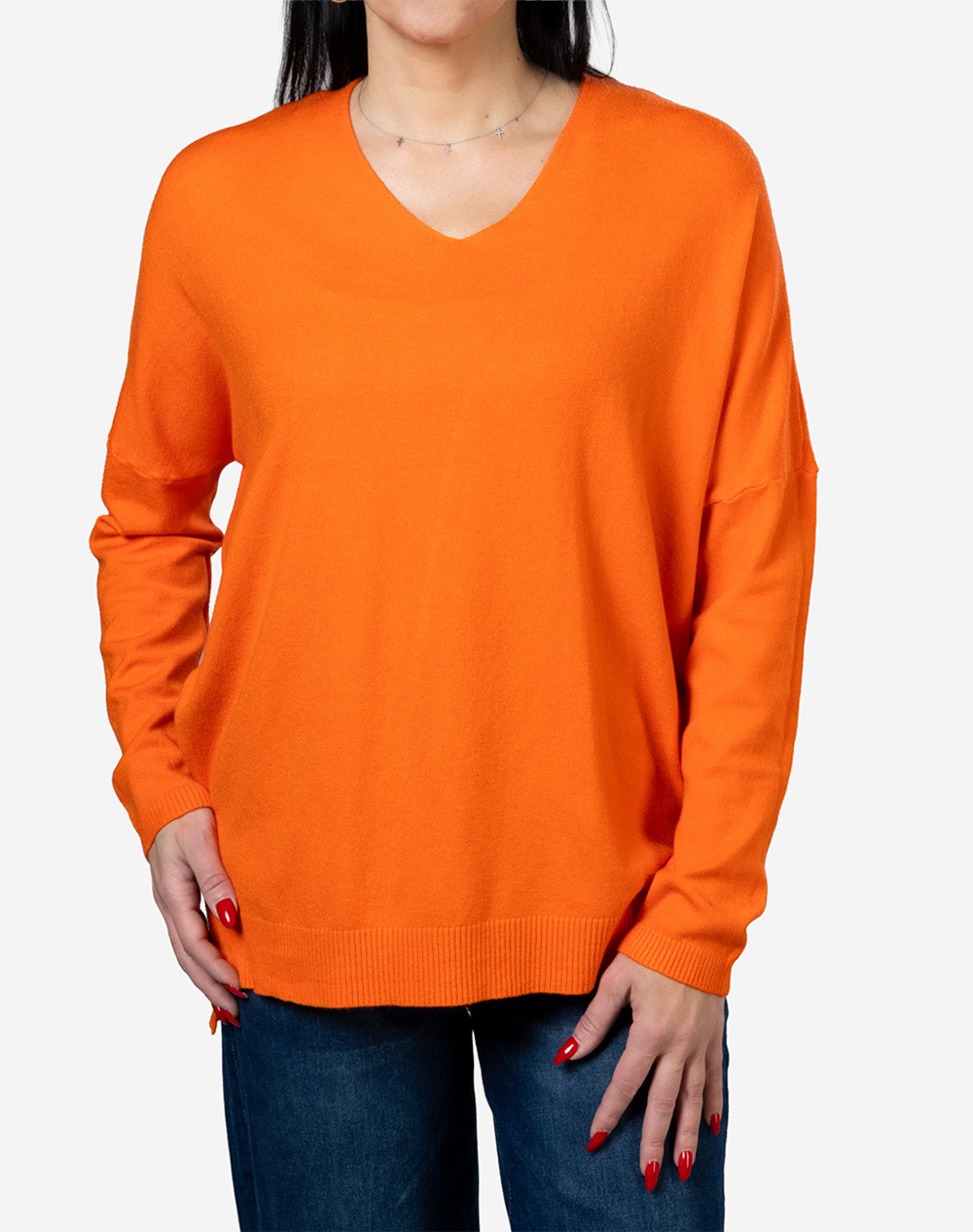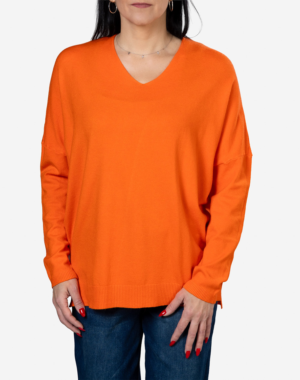 Γυναικεία πλεκτή μπλούζα, σε γραμμή oversized, μακρυμάνικη, με "V" λαιμόκοψη και rib άκρες. Καλύπτει έως 130εκ. περιφέρεια στο στήθος. (Σύνθεση: 55% Βισκόζη, 35% Πολυεστέρας, 5% Ελαστάνη)