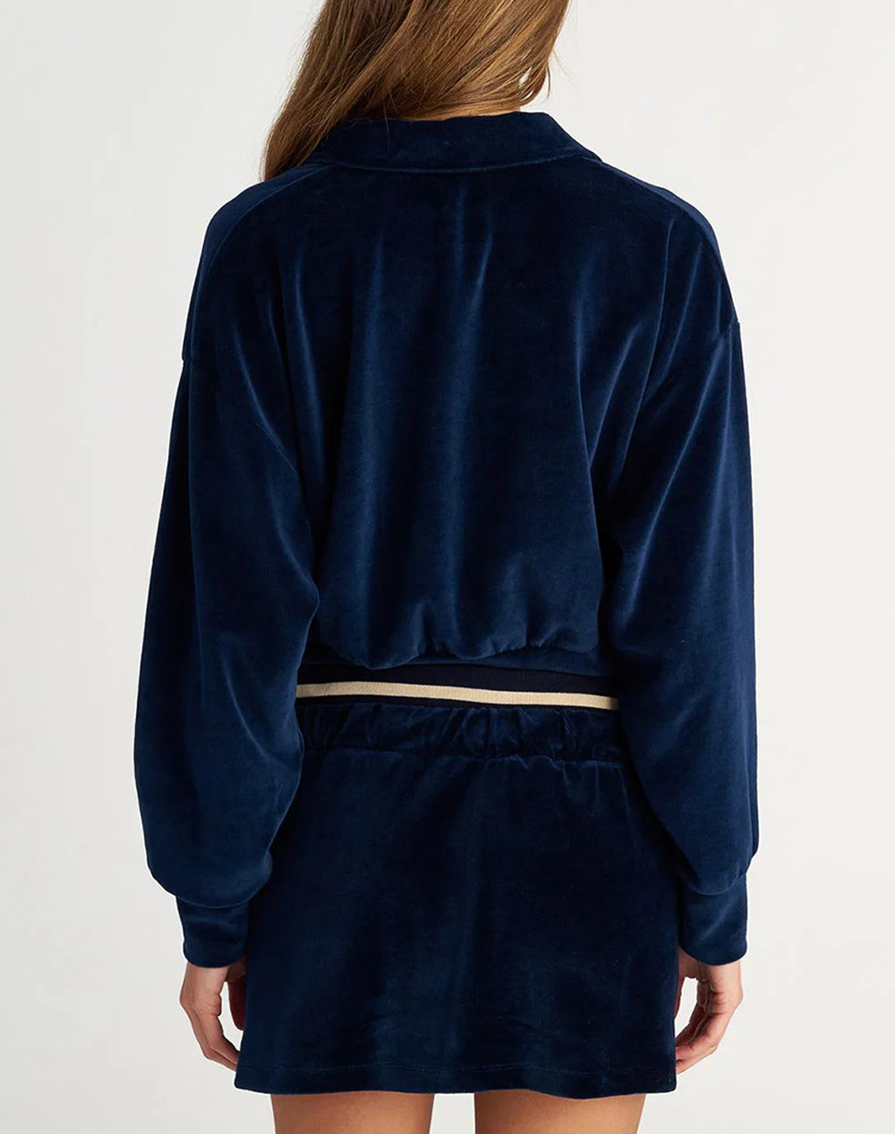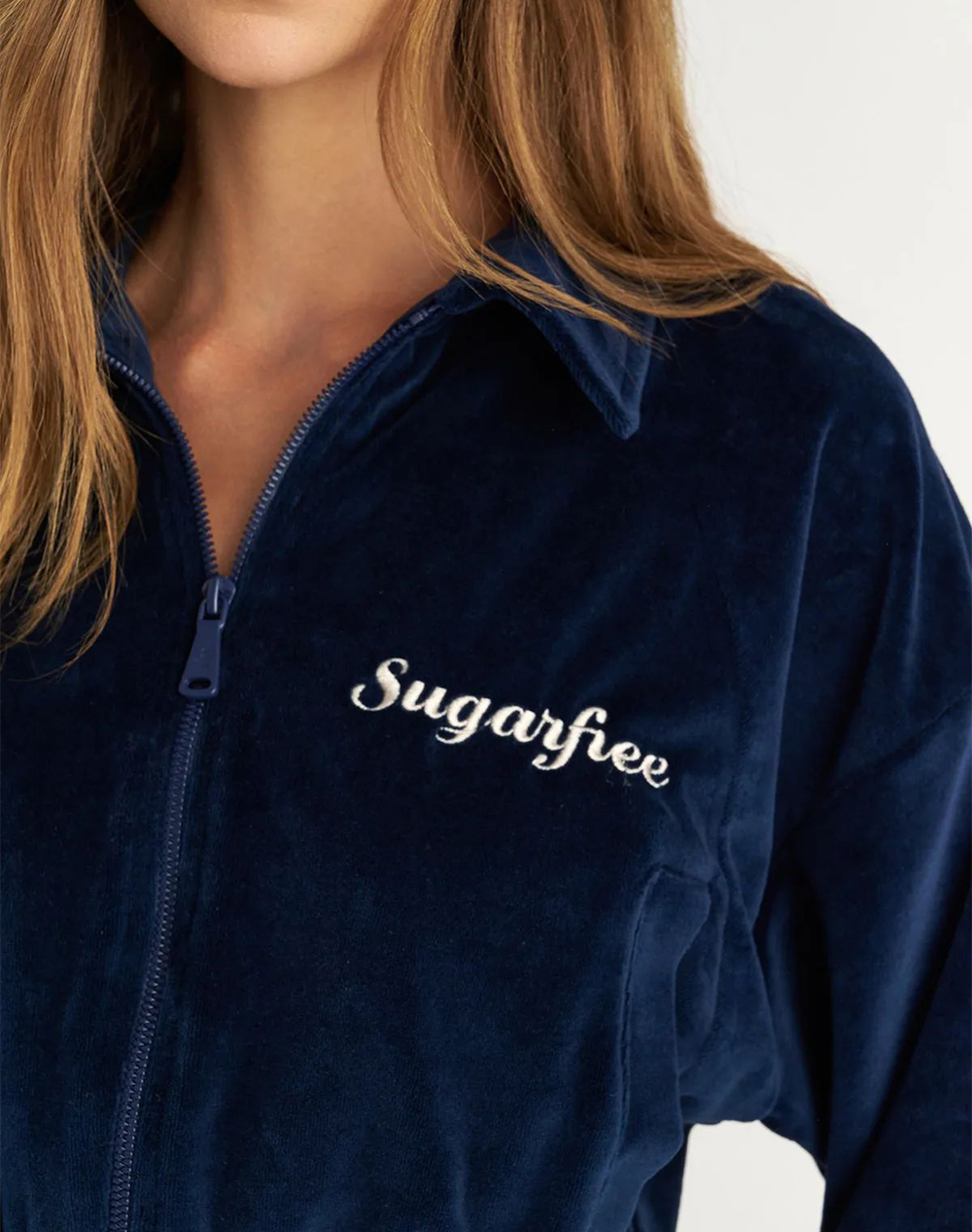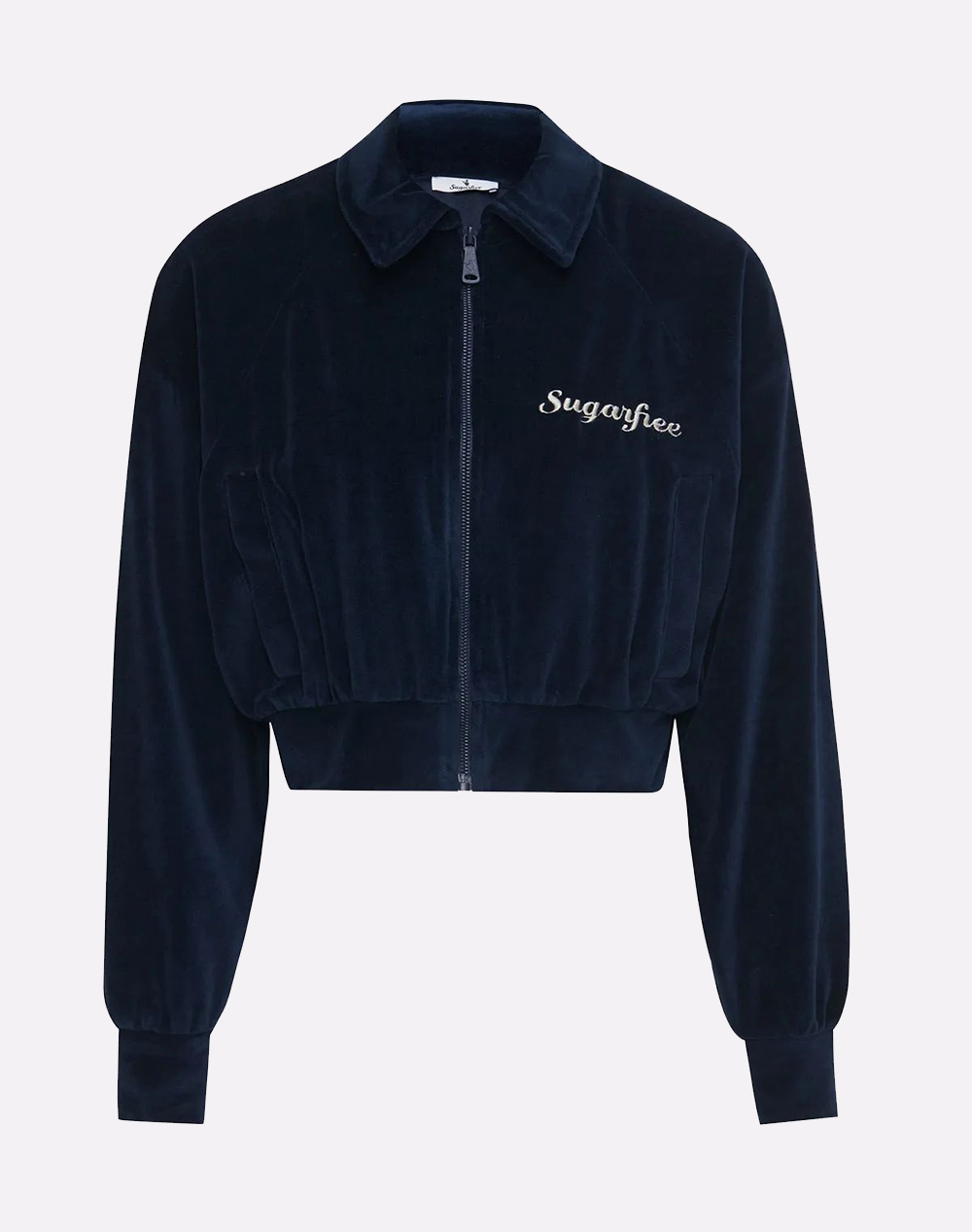 Women's velvet cardigan, regular fit, long sleeve, with collar, crop length and front zipper closure. (Composition: 80% Cotton, 20% Polyester)