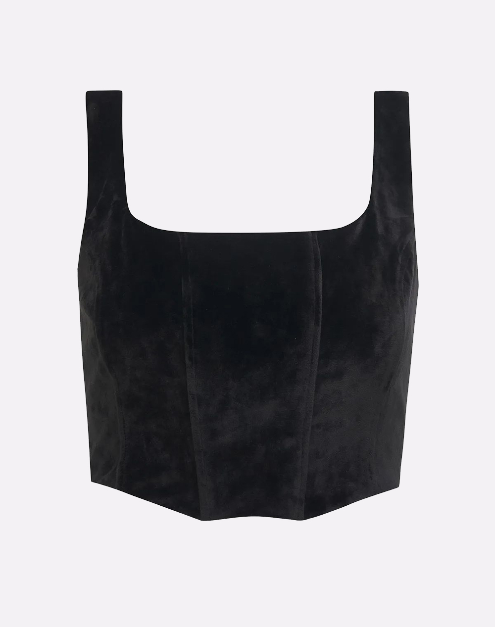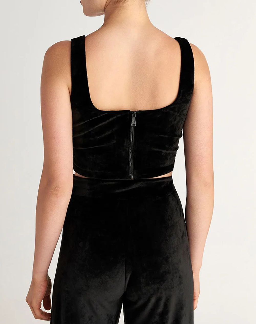 Women's velvet crop top, slim fit, with straps, extremely soft texture and zipper closure on the back. (Composition: 92% Polyester, 8% Elastane)