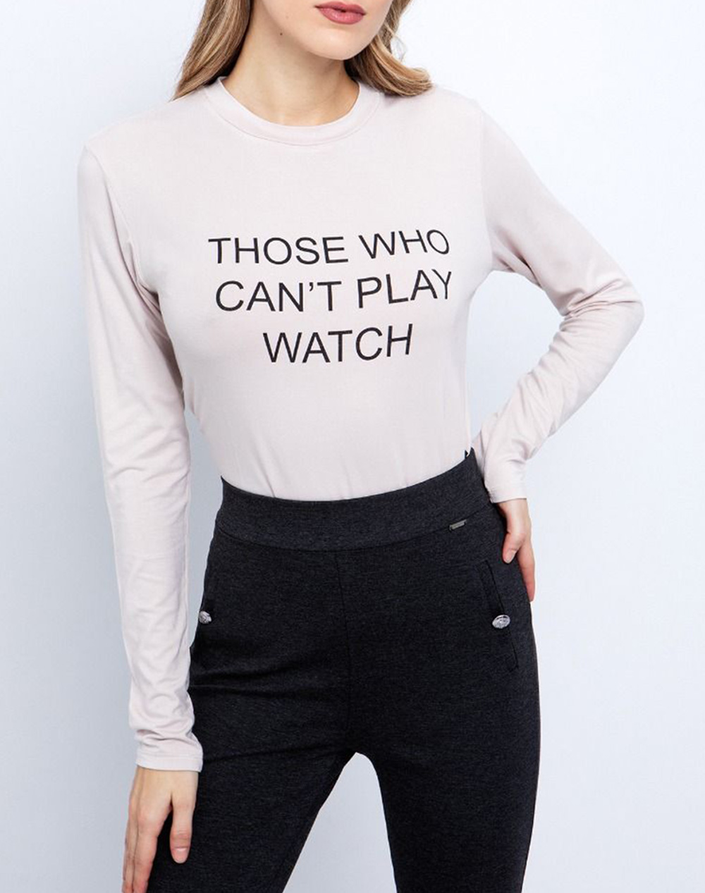 Women's blouse, regular fit, long sleeve, with round neckline and front print. (Composition: 93% Viscose, 7% Elastane)