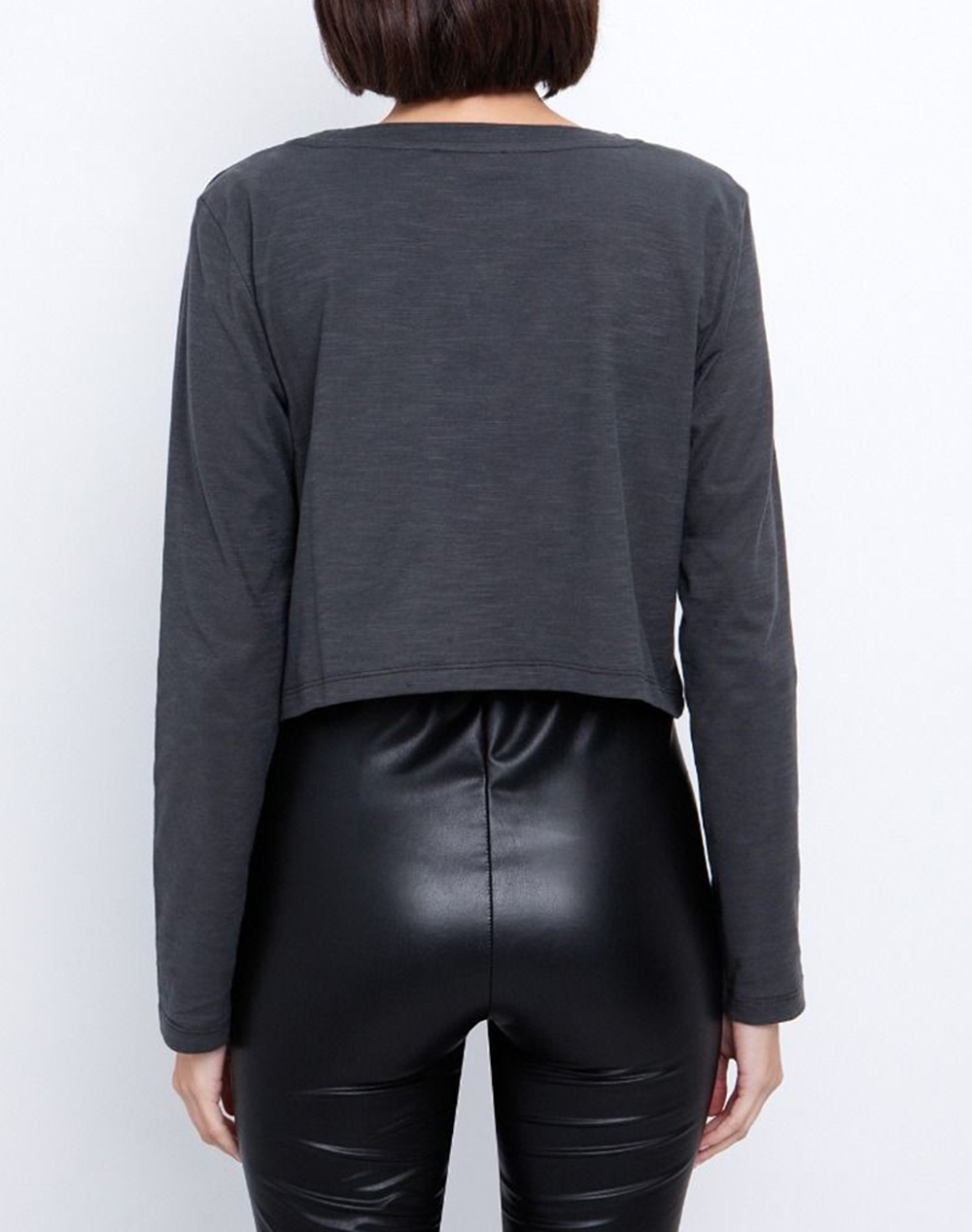 Women's blouse, in a comfortable fit, long sleeves, with a round neckline, short length and front print. (Composition: 100% Cotton)