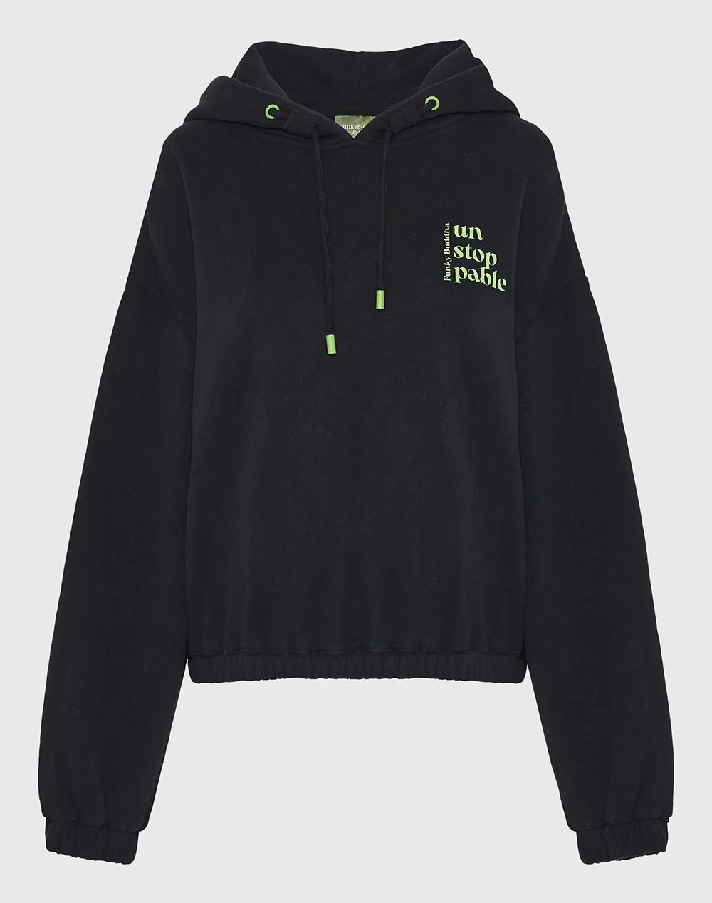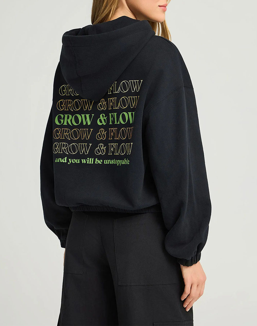 Women's sweatshirt, regular fit, long sleeve, with drawstring hood and front and back print. (Composition: 60% Cotton, 40% Polyester)