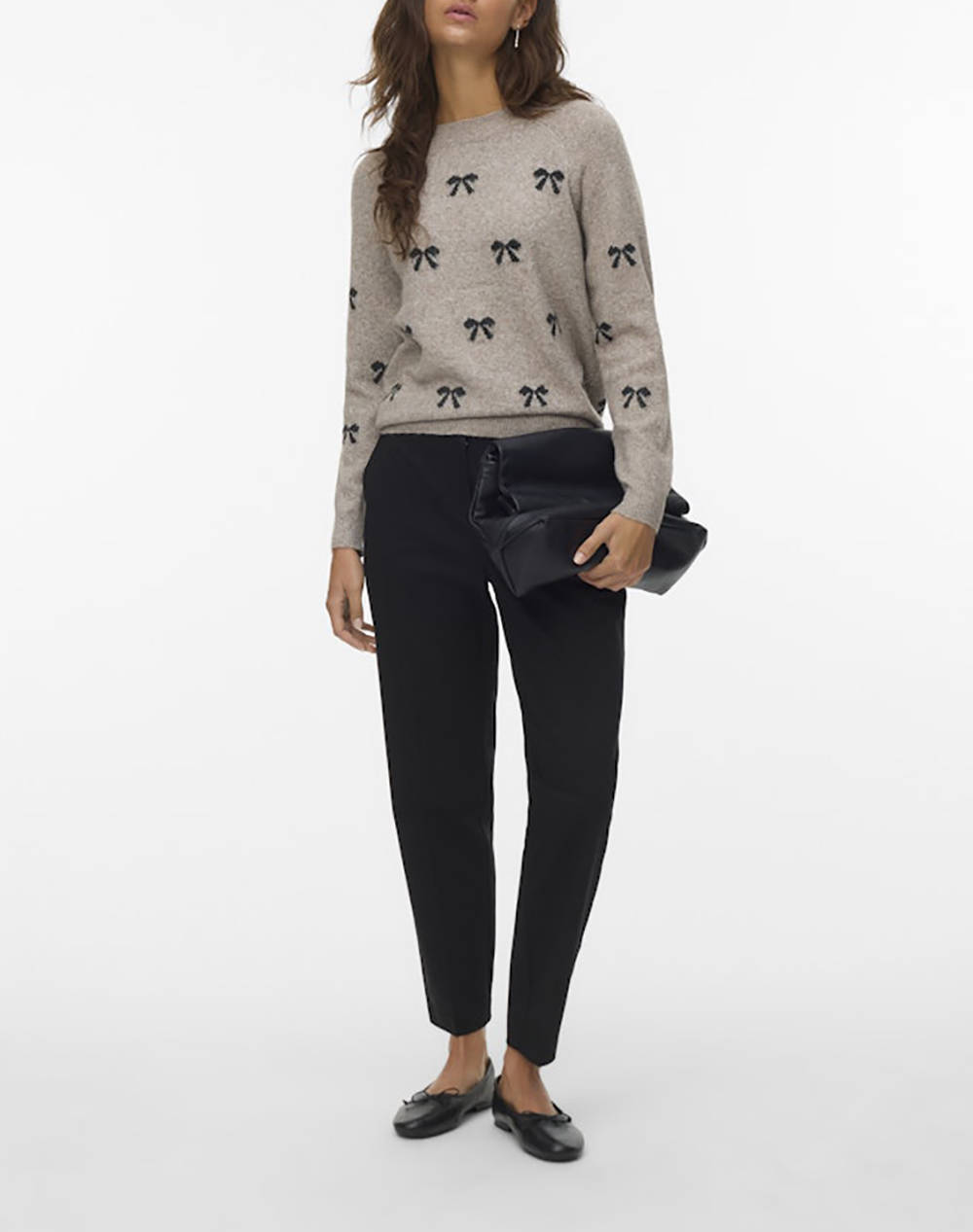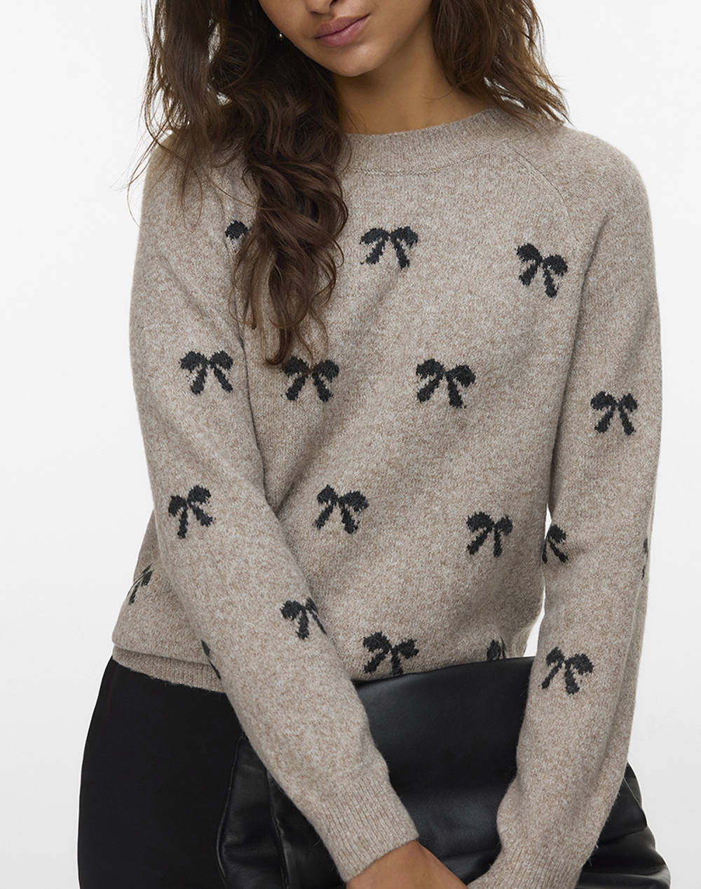 Women's sweater, regular fit, long sleeve, with round neckline and bow pattern. (Composition: 52% Polyester - Recycled, 42% Polyester, 3% Elastane, 3% Nylon)