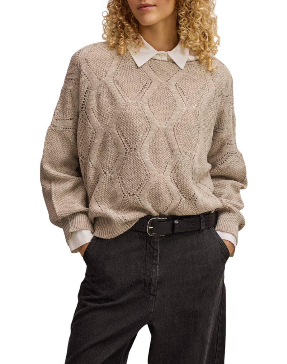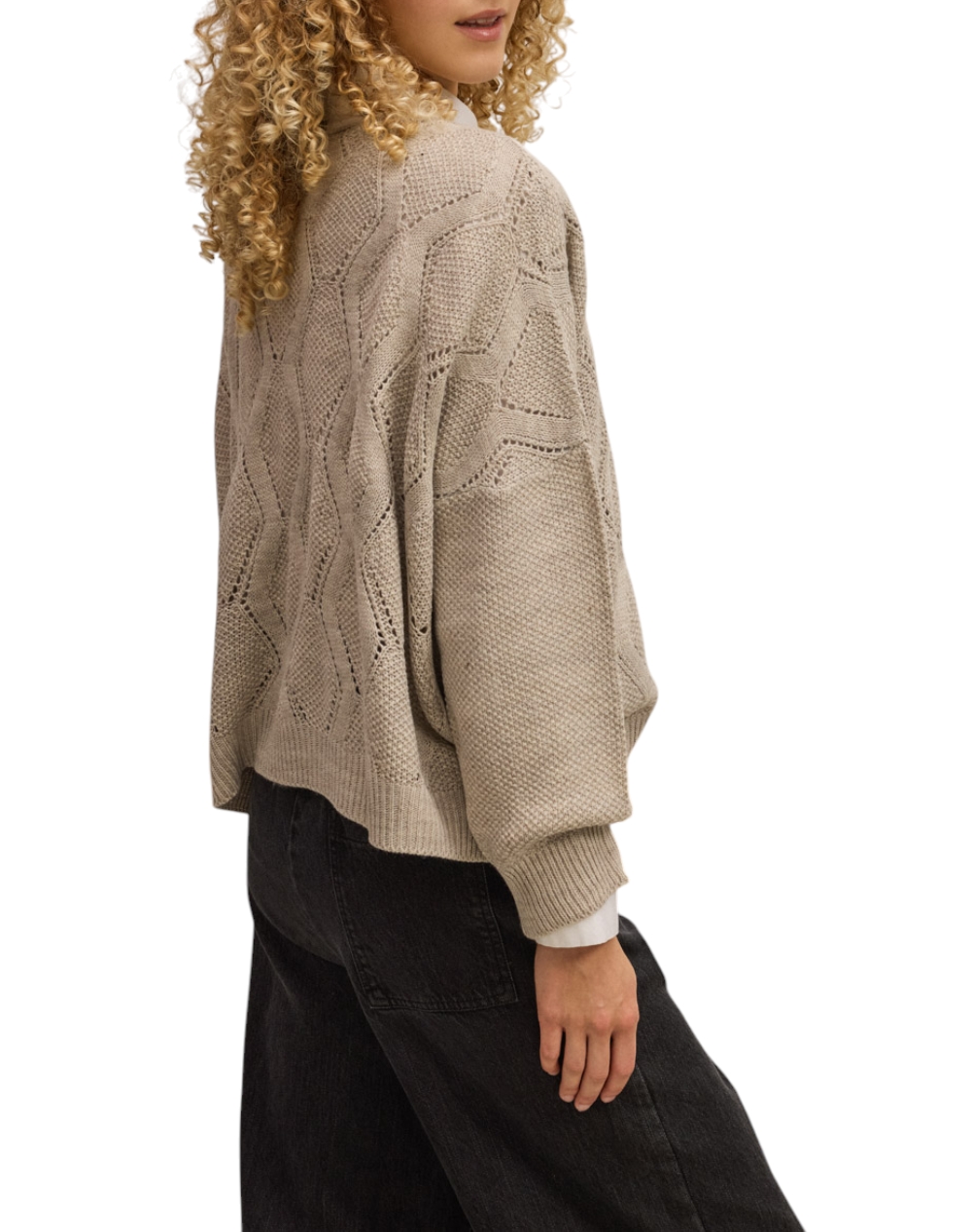 Γυναικεία πλεκτή μπλούζα, cropped, σε κανονική γραμμή, μακρυμάνικη, με διάτρητο σχέδιο και στρογγυλή λαιμόκοψη. (Σύνθεση: 100% Ακρυλικό)