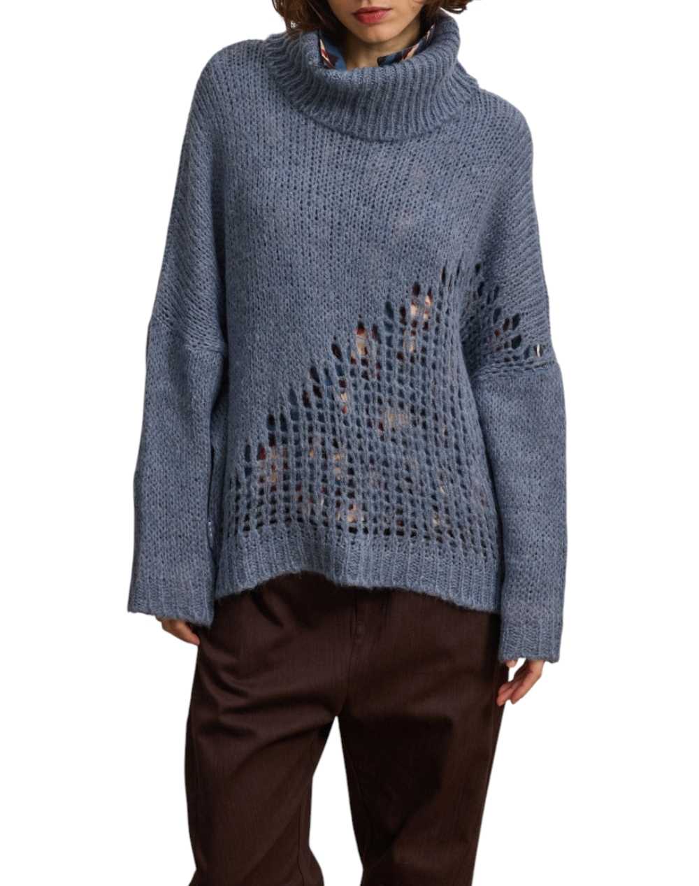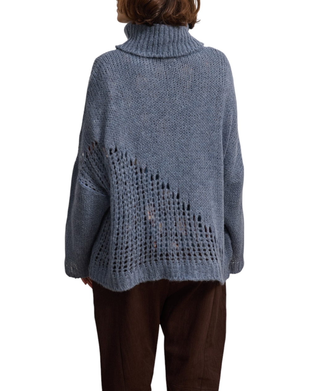 Women's sweater, long-sleeved, with perforated details and turtleneck. (Composition: 57% Acrylic, 29% Recyclable Polyamide, 7% Wool, 7% Ecovero Viscose)
