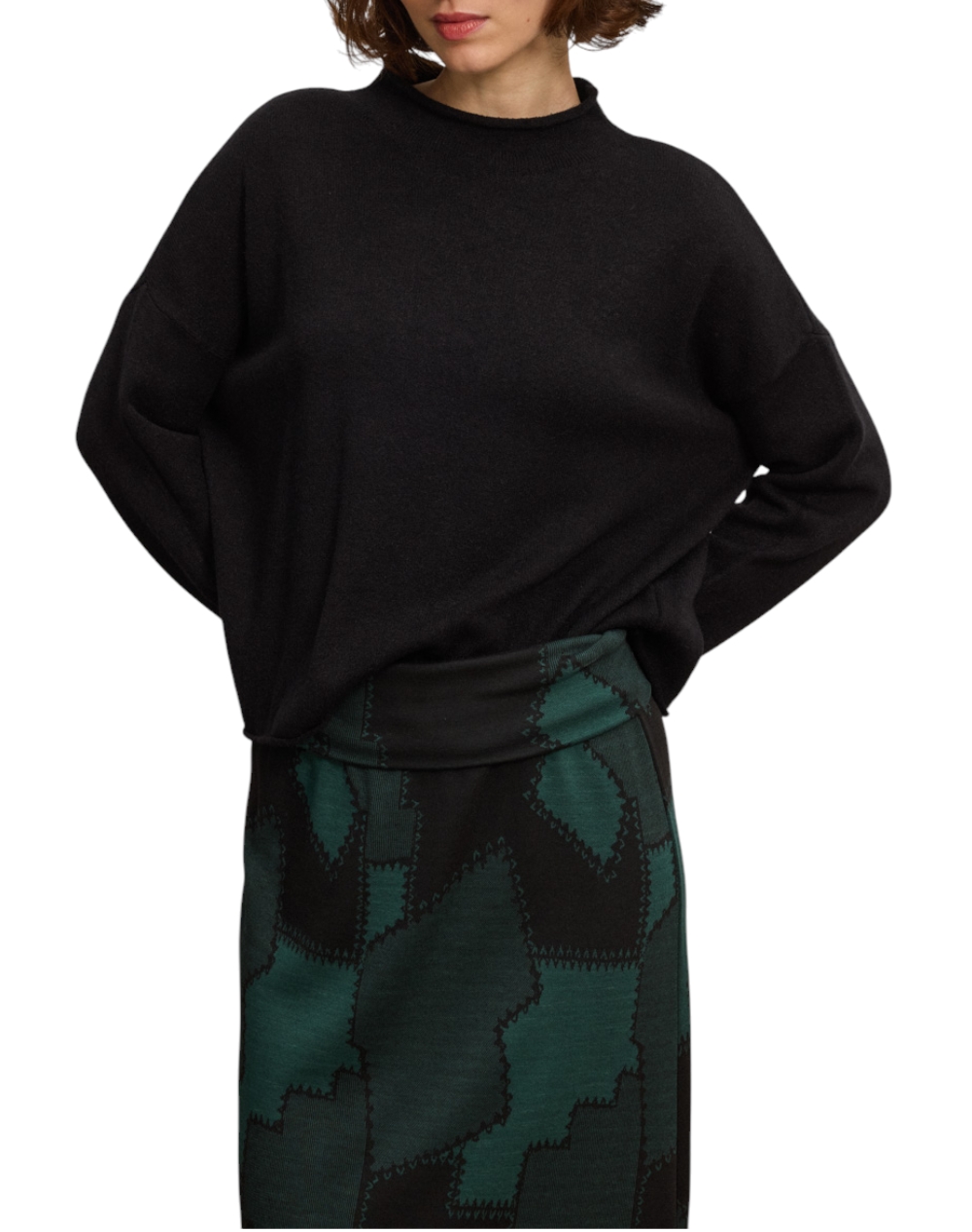 Γυναικεία πλεκτή μπλούζα, σε άνετη γραμμή, μακρυμάνικη, με κυματιστή λεπτομέρεια στο τελείωμα και στρογγυλή λαιμόκοψη. (Σύνθεση: 56% Βισκόζη, 28% Πολυεστέρας, 16% Πολυαμίδιο)