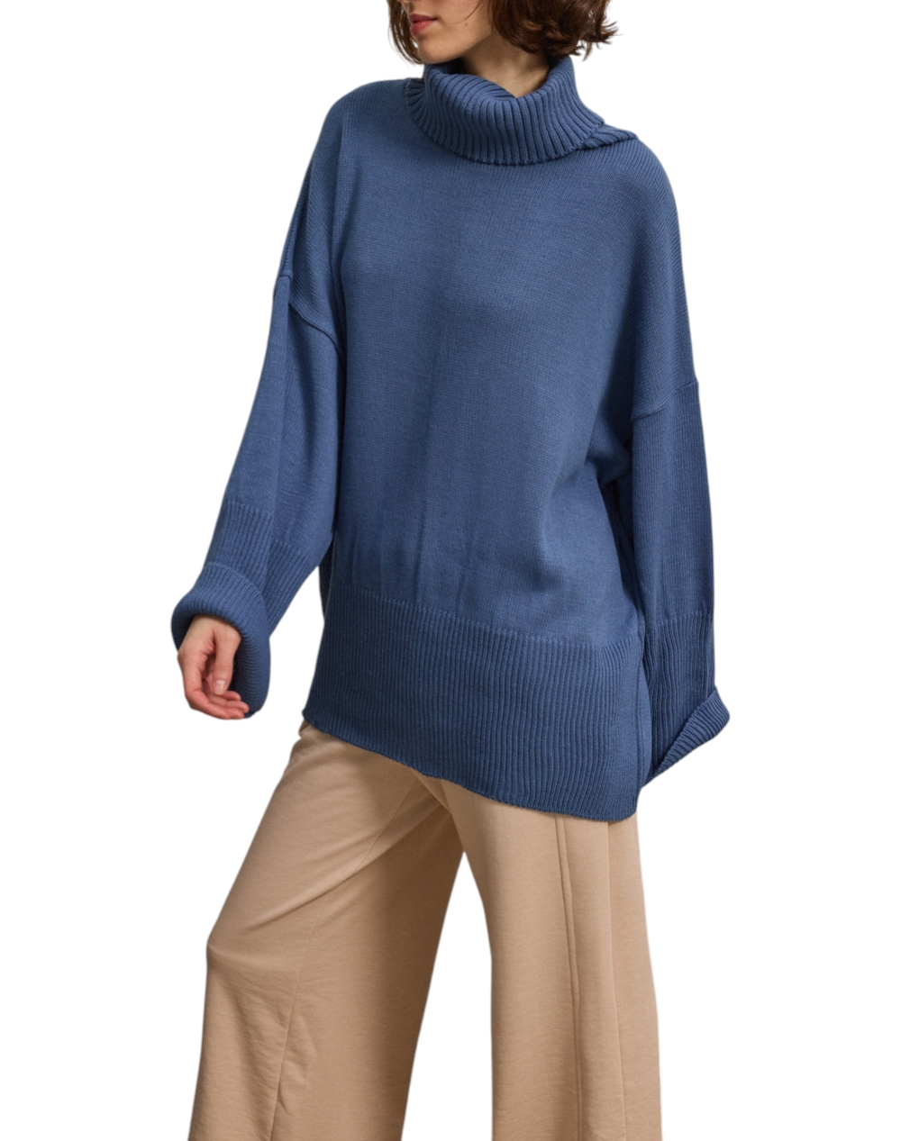 Γυναικεία πλεκτή μπλούζα, σε άνετη γραμμή, μακρυμάνικη, με χαλαρό ζιβάγκο και φαρδιά ριμπ πλέξη στο τελείωμα και στα μανίκια. (Σύνθεση: 100% Ακρυλικό)