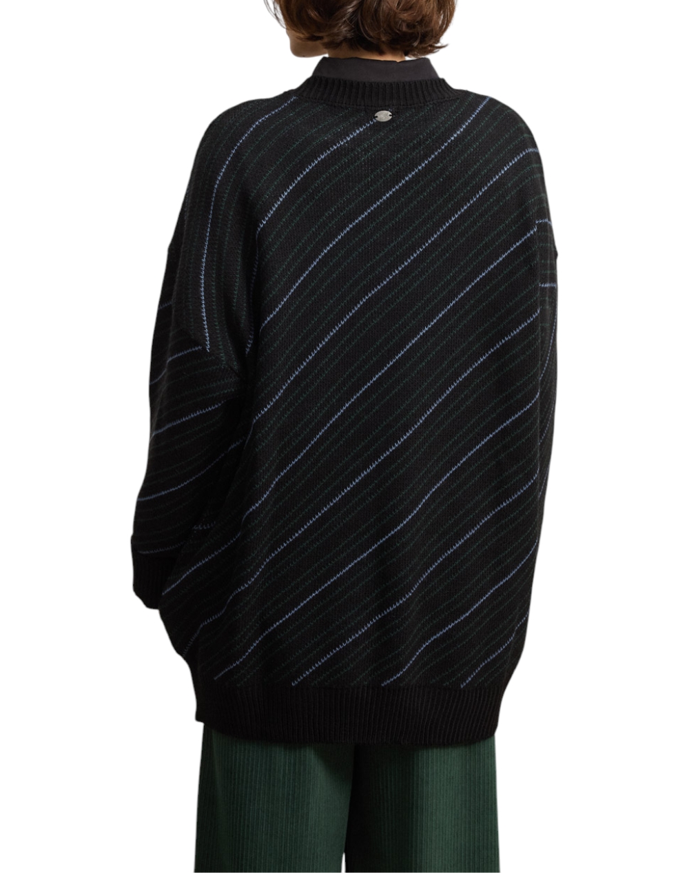 Γυναικεία πλεκτή μπλούζα, σε φαρδιά γραμμή, μακρυμάνικη, με διαγώνιο ριγέ σχέδιο και στρογγυλή λαιμόκοψη. (Σύνθεση: 100% Ακρυλικό)