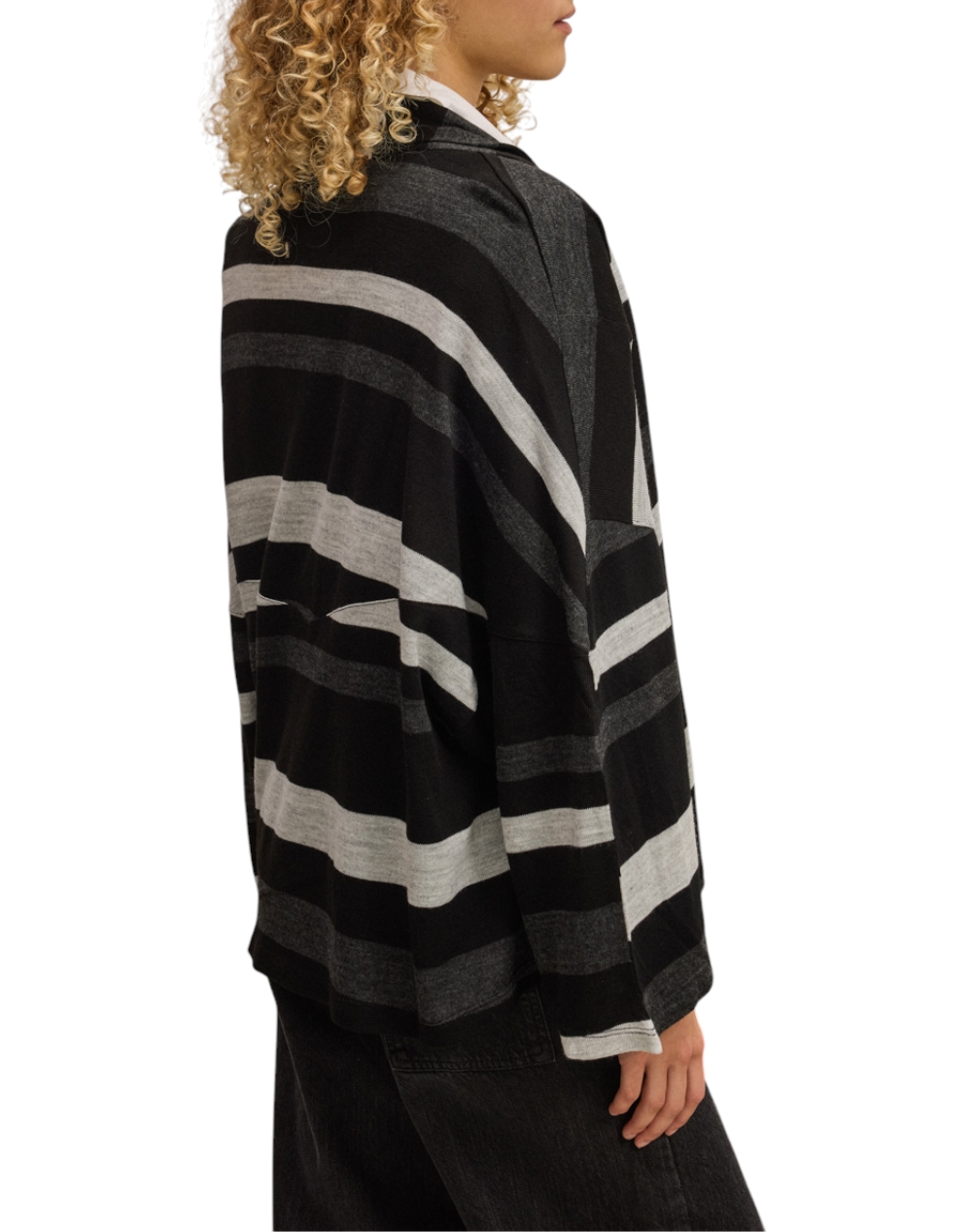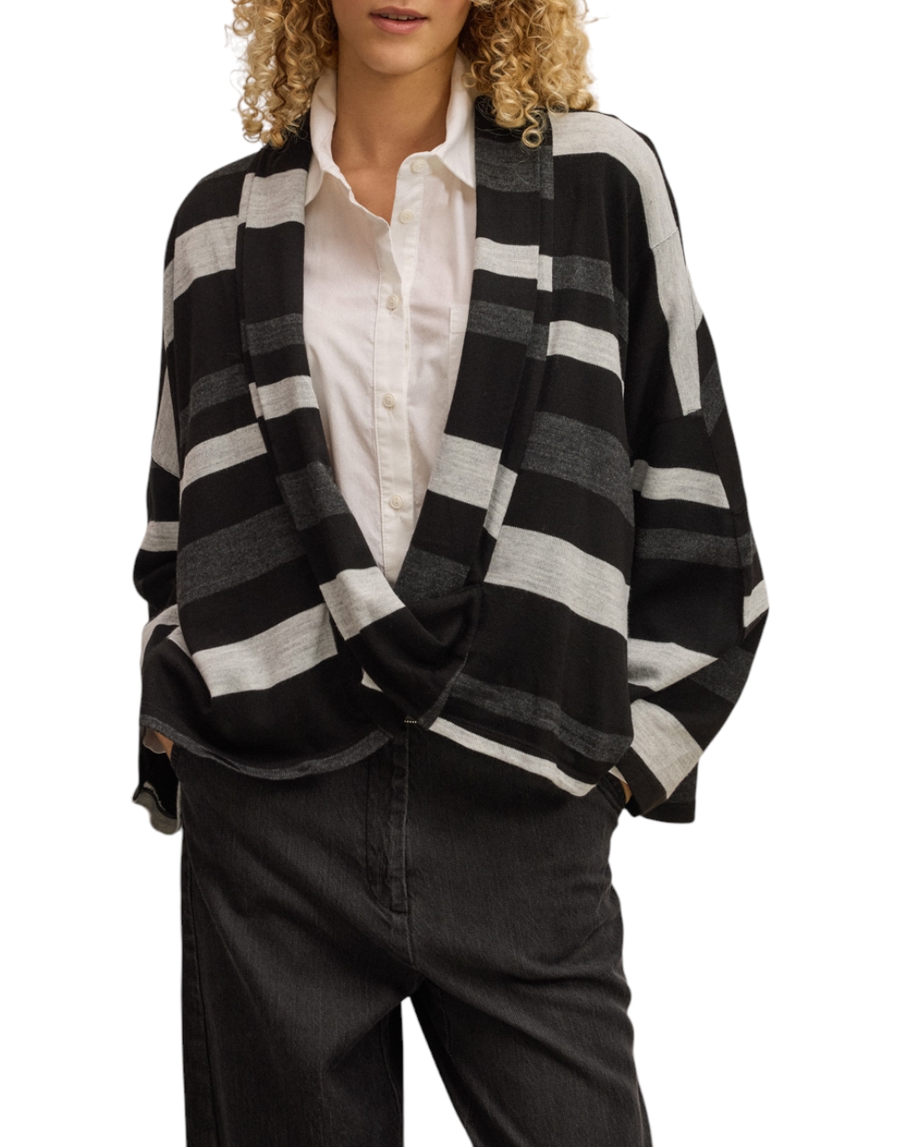 Γυναικεία πλεκτή μπλούζα, oversized, μακρυμάνικη, με ριγέ μοτίβο και σταυρωτό άνοιγμα στο μπροστινό μέρος. (Σύνθεση: 100% Ακρυλικό)