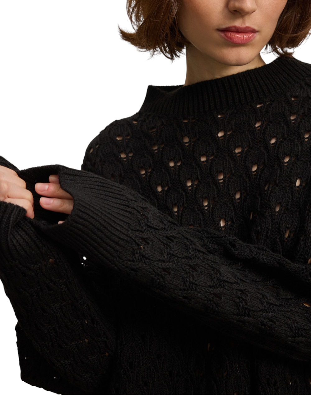 Γυναικεία πλεκτή μπλούζα, σε κανονική γραμμή, μακρυμάνικη, με διάτρητη πλέξη και στρογγυλή λαιμόκοψη. (Σύνθεση: 100% Ακρυλικό)