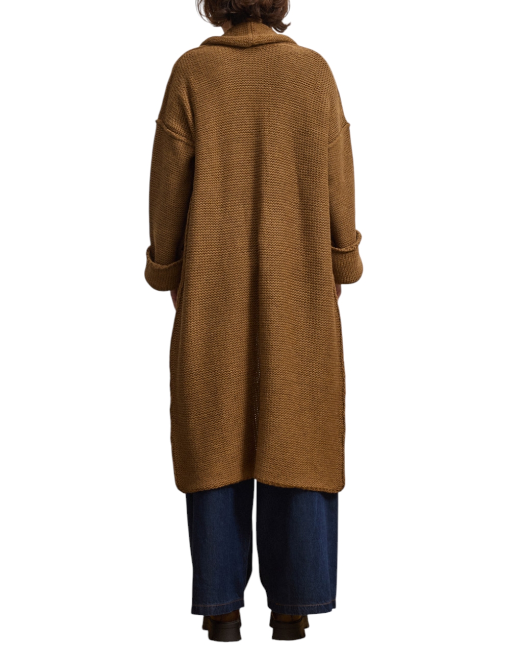 Γυναικεία πλεκτή ζακέτα, σε άνετη γραμμή, με μήκος κάτω από το γόνατο, ανάγλυφη πλέξη και μεγάλες τσέπες μπροστά. (Σύνθεση: 68% Ακρυλικό, 22% Ανακυκλώσιμo ακρυλικό,10% Μαλλί)