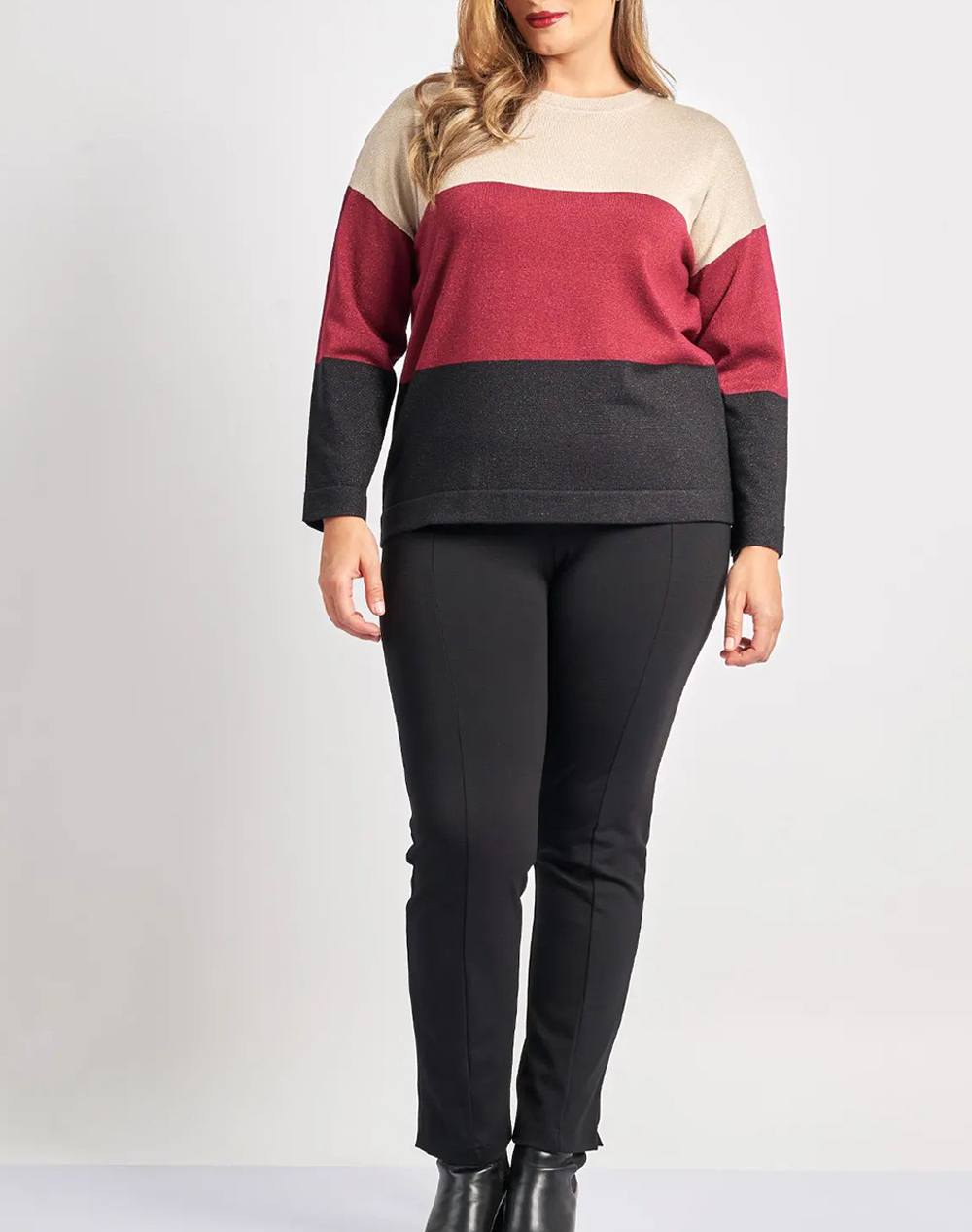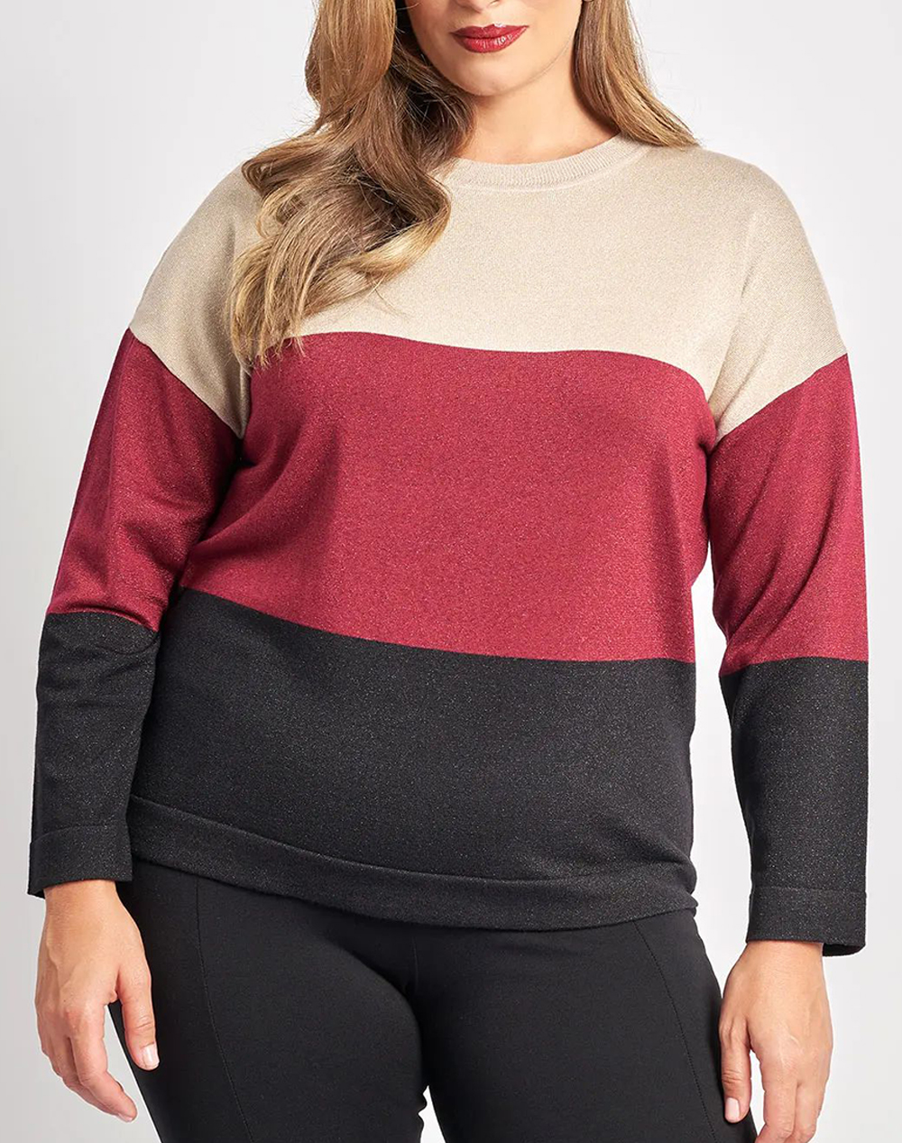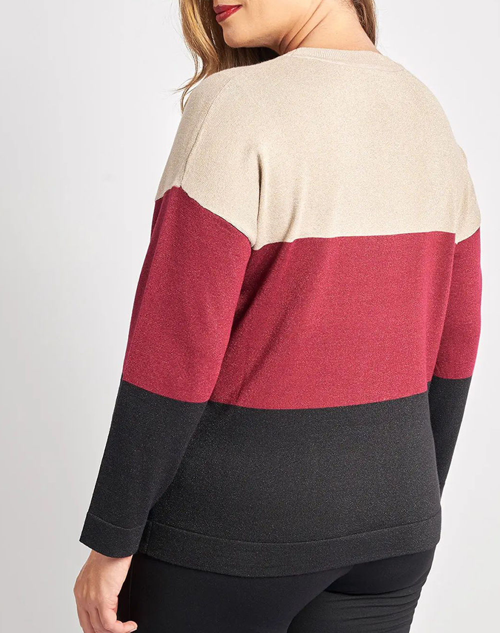 Γυναικεία πλεκτή μπλούζα, μακρυμάνικη, με ριγέ μοτίβο, στρογγυλή λαιμόκοψη και ίσιο τελείωμα.(Σύνθεση: 48% Βισκόζη, 27% Πολυεστέρας, 25% Πολυαμίδιο)