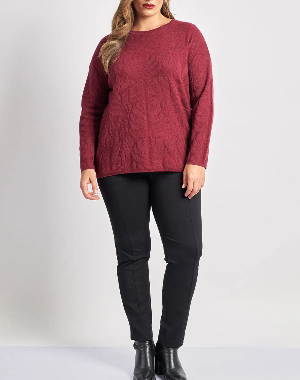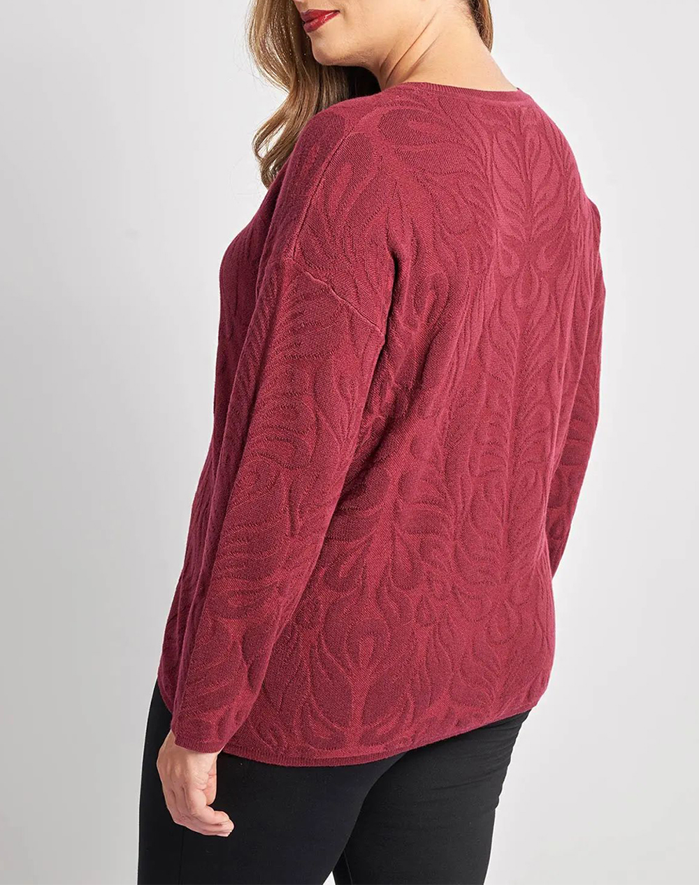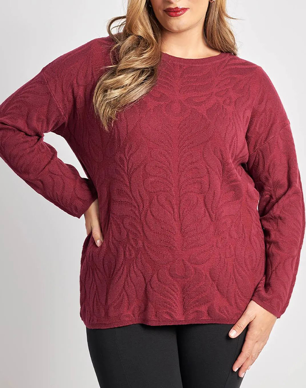 Γυναικεία πλεκτή μπλούζα, σε ίσια γραμμή, μακρυμάνικη, με ζακάρ μοτίβο και στρογγυλή λαιμόκοψη.(Σύνθεση: 30% Βισκόζη, 28% Ακρυλικο, 22% Νάυλον, 20% Βαμβάκι)