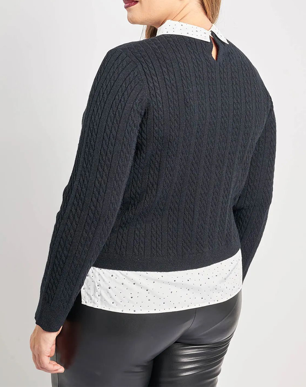 Γυναικεία πλεκτή μπλούζα, μακρυμάνικη, με γιακά πουκαμίσου και διακόσμηση με στρας.(Σύνθεση: 59% Πολυεστέρας, 28% Πολυαμίδιο, 13% Ακρυλικό)
