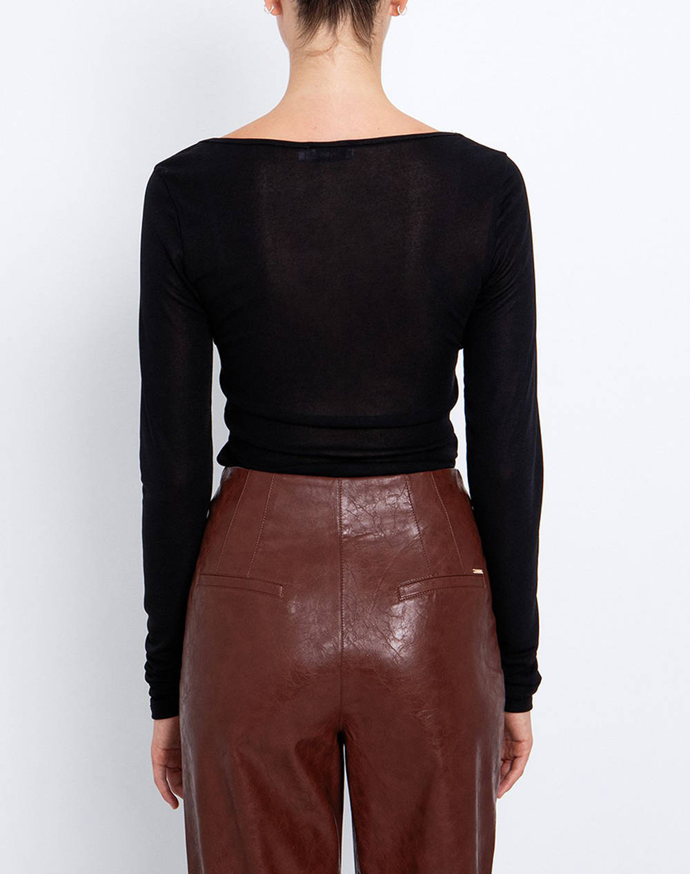 Γυναικεία μπλούζα σε στενή γραμμή, μακρυμάνικη, με λεπτή πλέξη και τετράγωνη λαιμόκοψη. (Σύνθεση: 100% Πολυεστέρας)